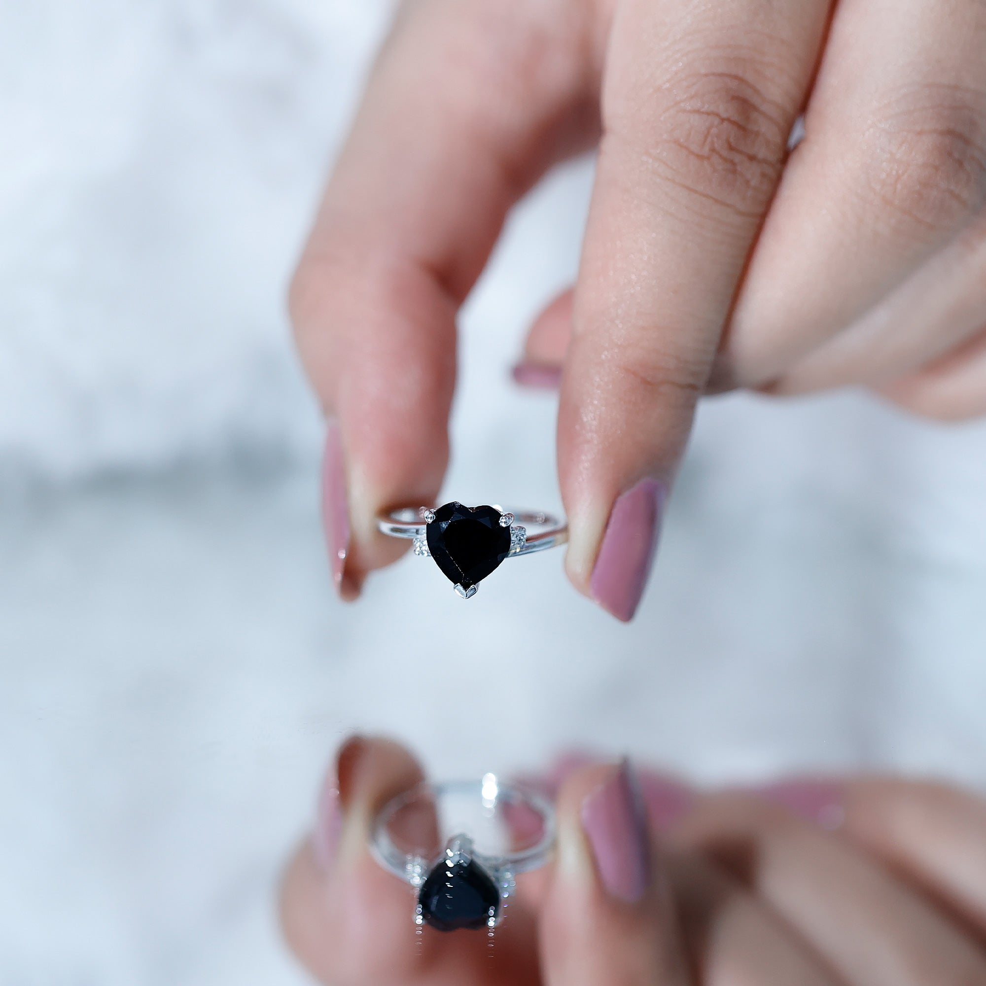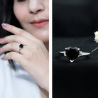 This Black Onyx Engagement Ring is a beautiful way to celebrate love that is unique and full of meaning. At the center sits an elegant 8 MM heart shaped black onyx, set securely in prong setting, letting the beauty of the stone shine from every angle. On both sides of the heart, you will find a dainty round diamond that adds a soft, graceful sparkle. But what makes this Heart Engagement Ring stand out even more is its bypass shank, a stylish twist in the band that gently wraps around the center stone. It gives the ring a flowing feel, like two paths coming together in perfect harmony. Made with AAA quality black onyx and HI-SI quality diamonds, this Solitaire Engagement Ring is crafted with care, beauty, and long-lasting quality. Its classic design makes it easy to wear every day, but it is special enough for the big moments too. It also arrives in a lovely jewelry box with a certificate of authenticity, ready to gift or treasure for yourself. Simple, stylish, and timeless, this Black Onyx and Diamond Ring is a reminder that real love takes its own beautiful shape.