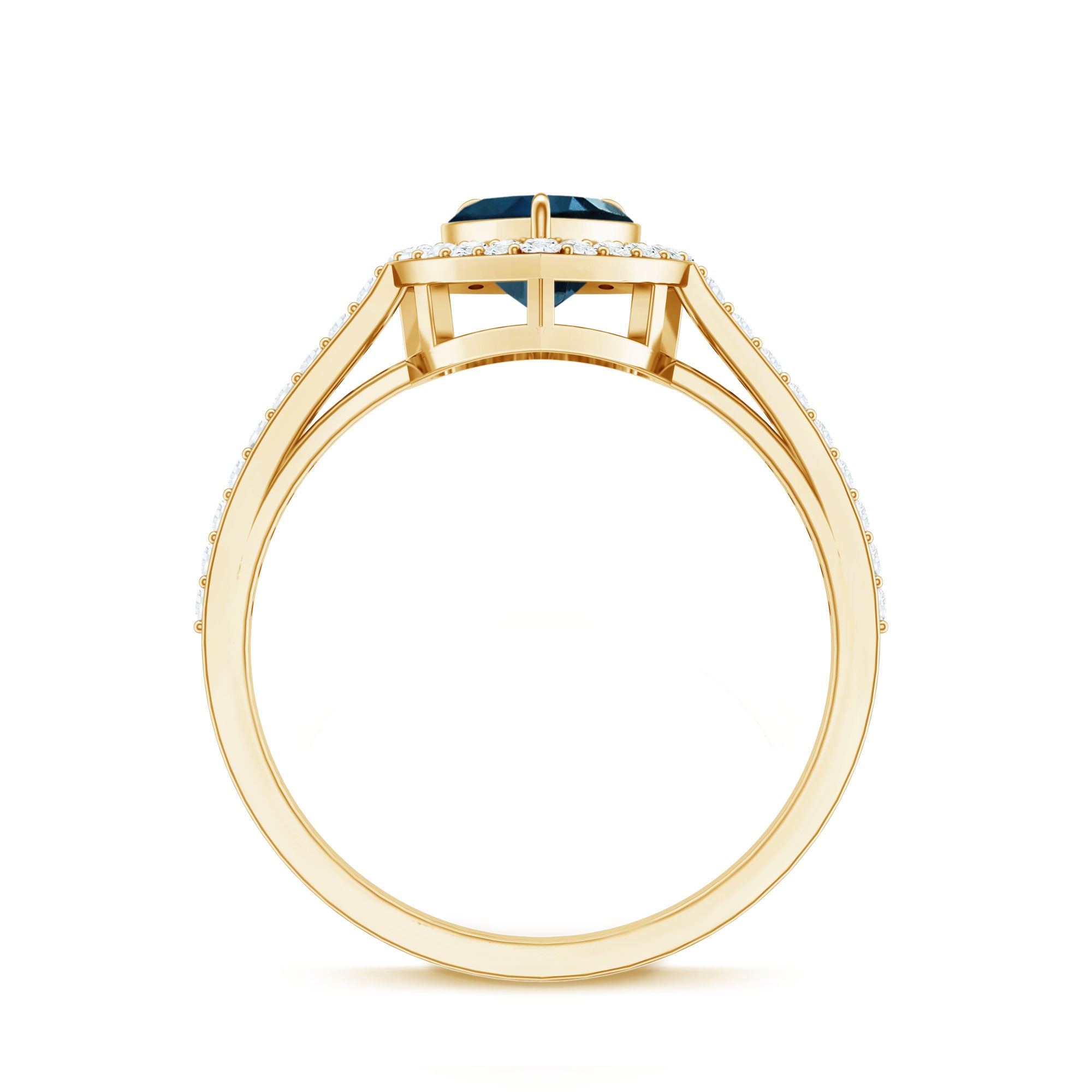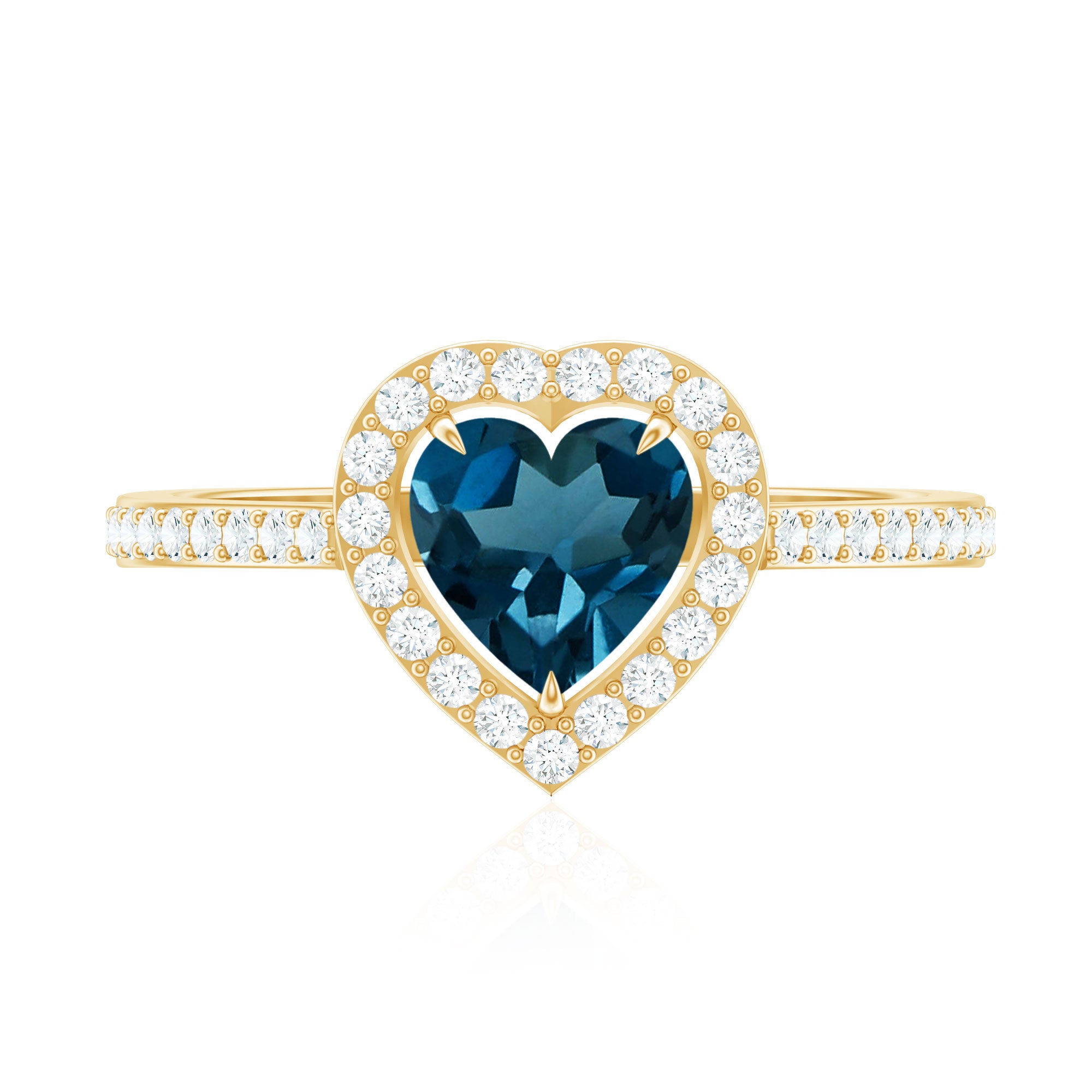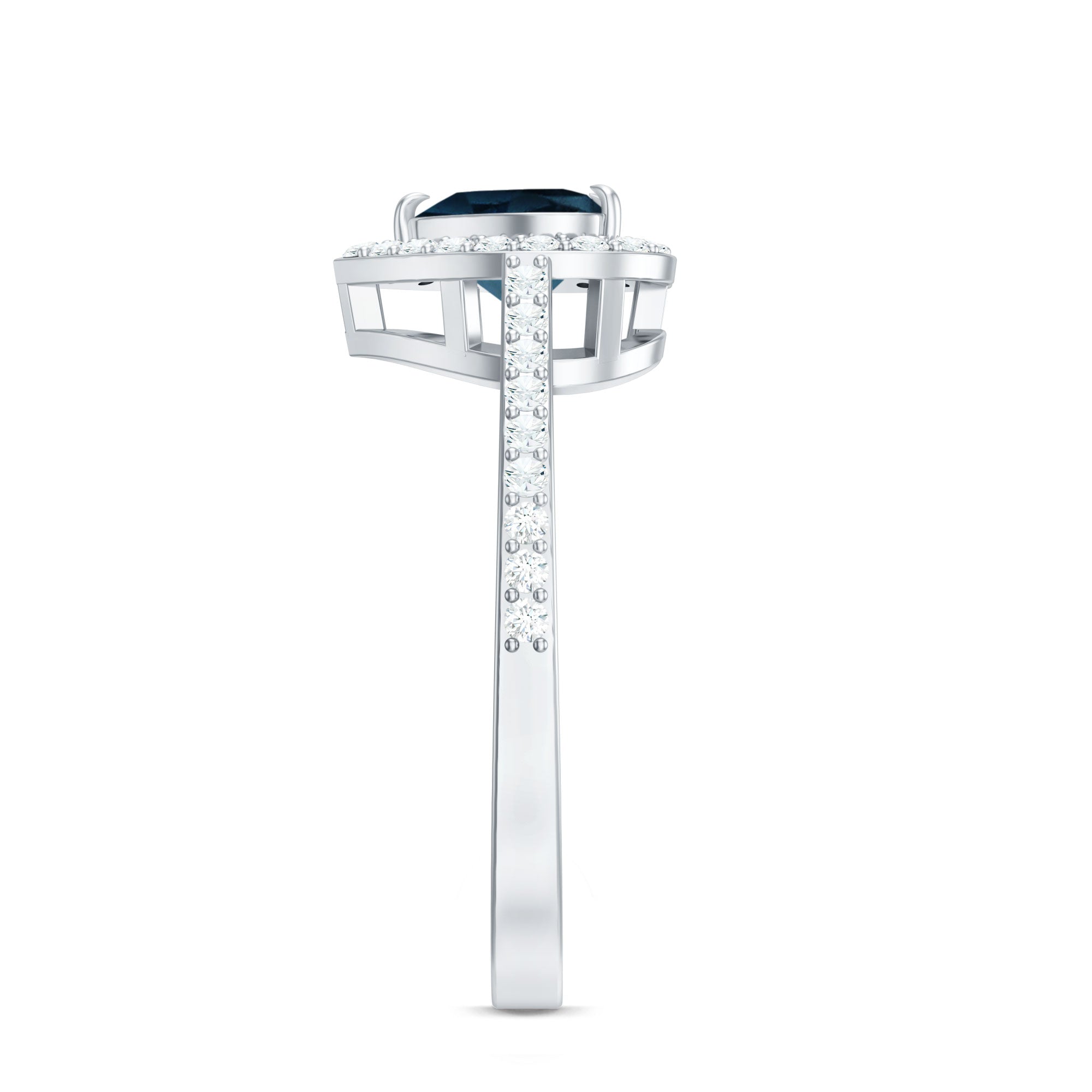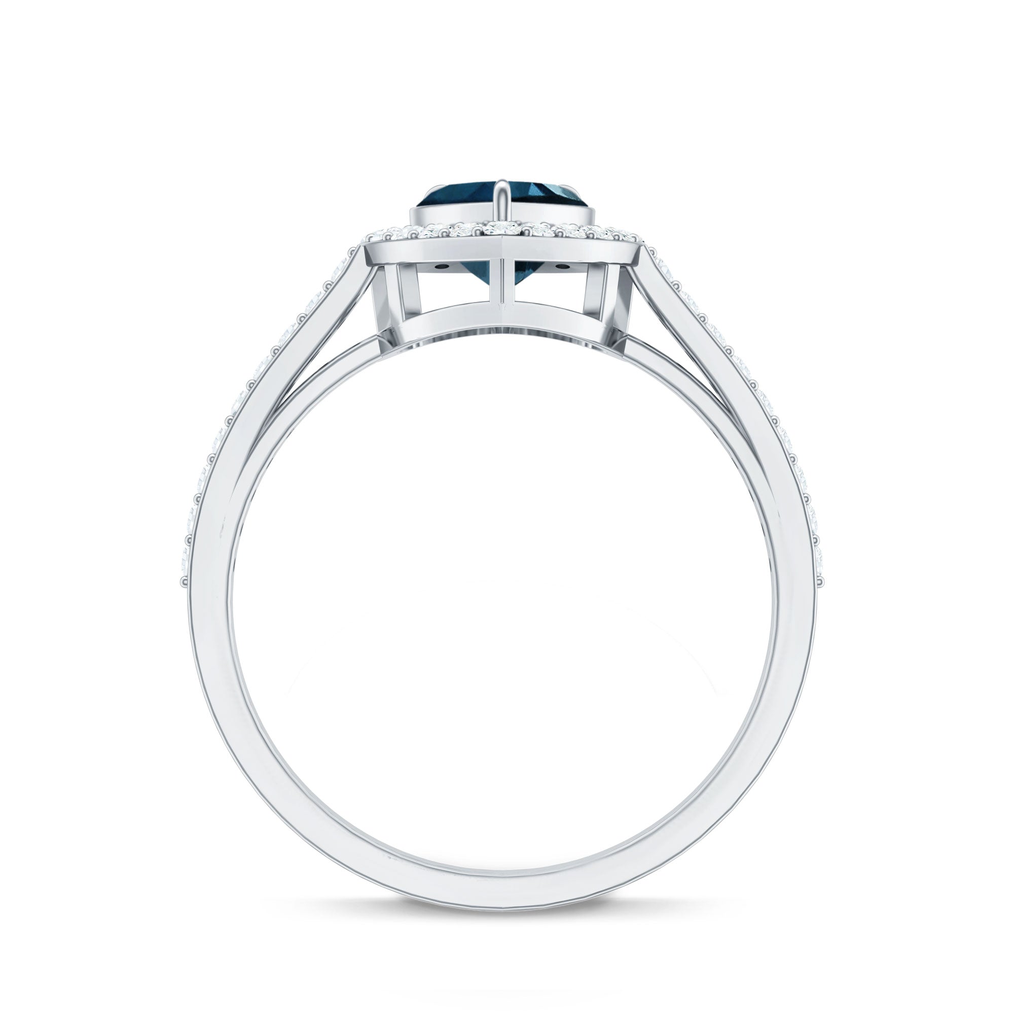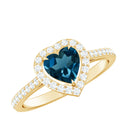 Heart Shaped London Blue Topaz Engagement Ring with Diamond Halo