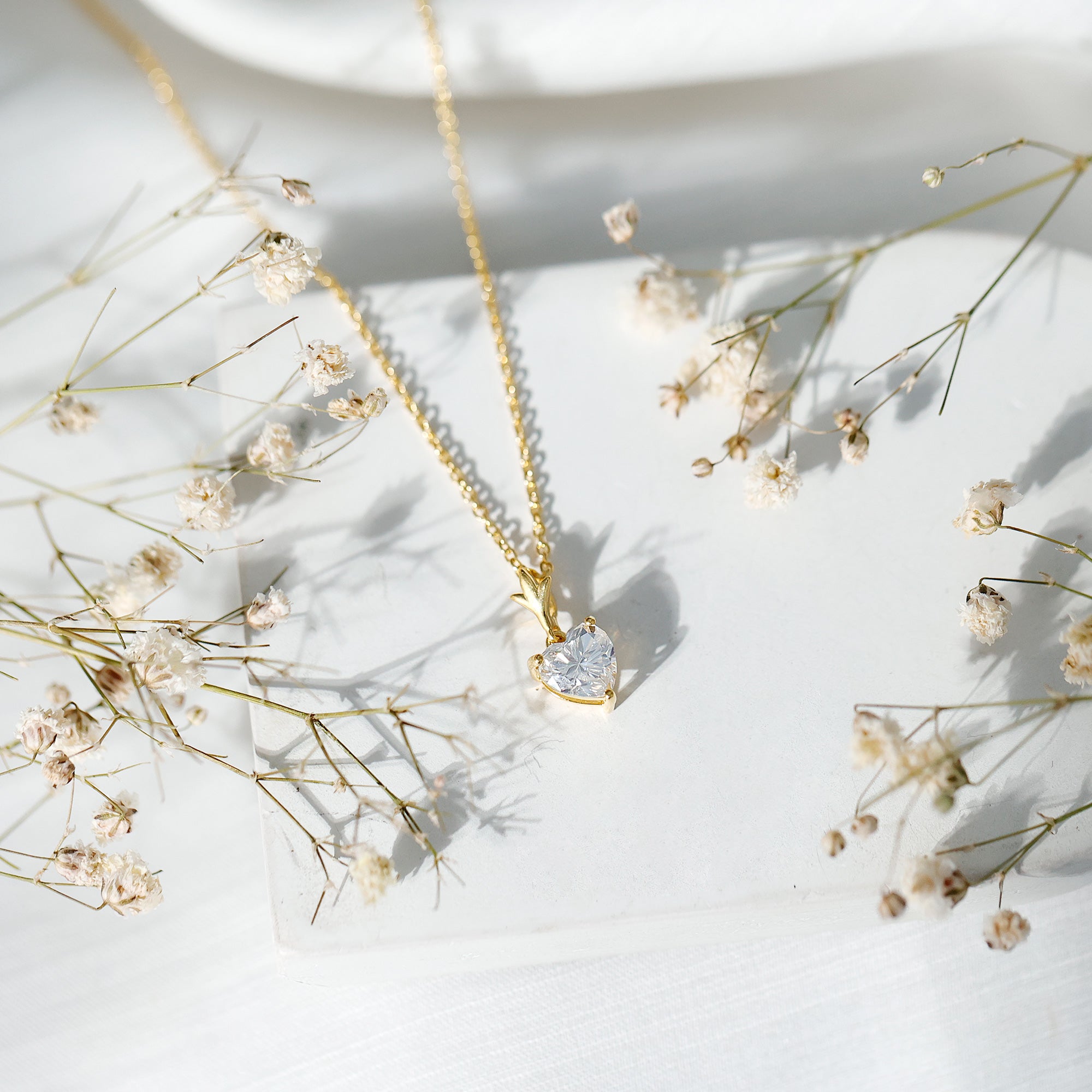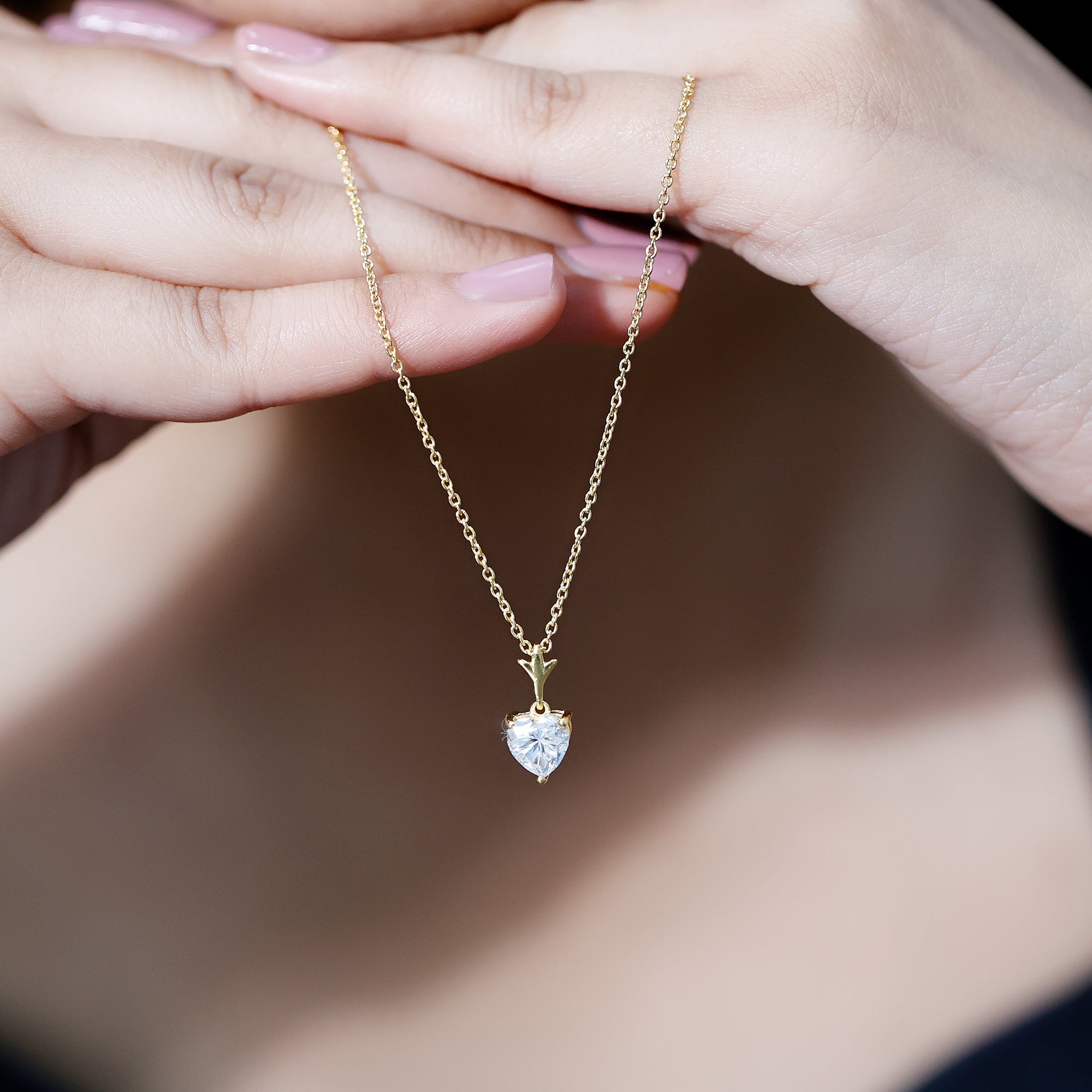 Heart Shaped Moissanite Pendant With Gold Plated Silver Chain