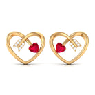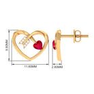 Heart Stud Earrings with Lab Created Ruby and Diamond