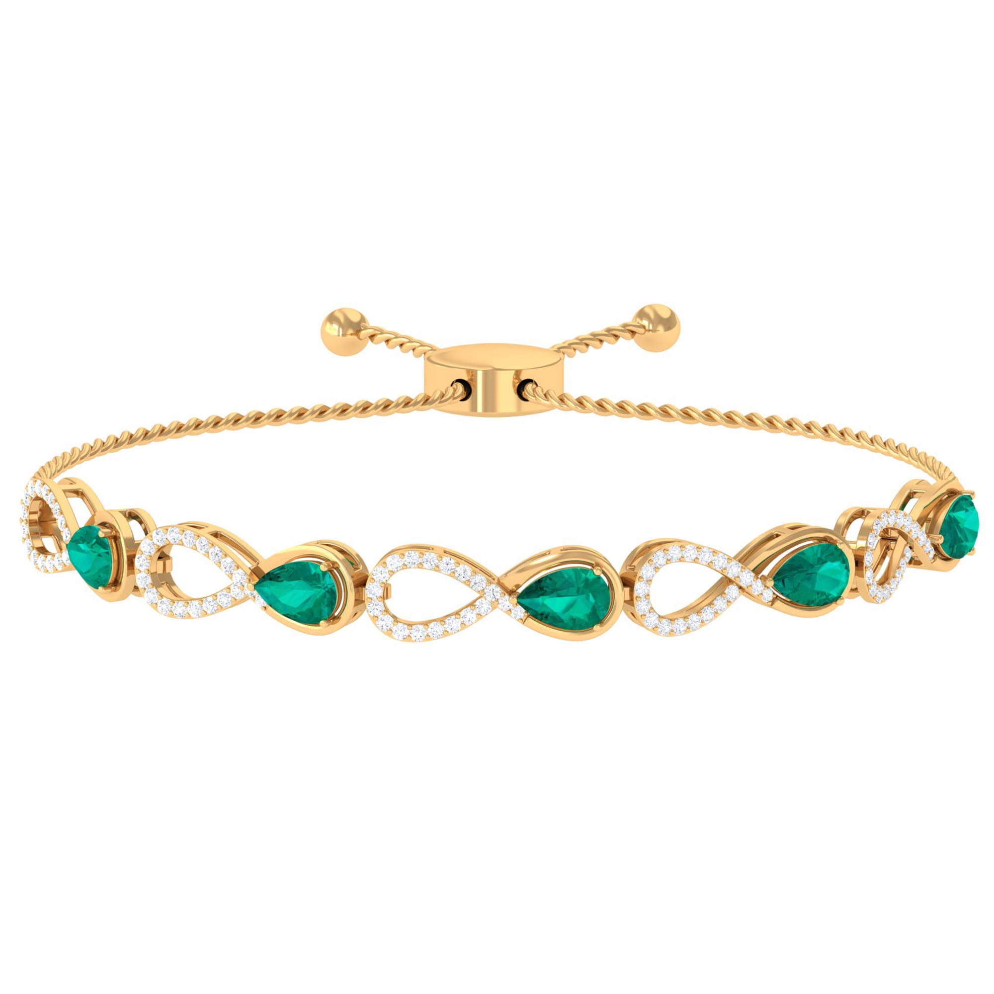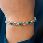 Elevate your everyday look with our Infinity Bracelet, a stunning combination of elegance and sophistication. The Infinity design is adorned with pear shaped Emerald complemented by Round Moissanite making this Chain Bracelet a captivating choice for her. This Emerald bracelet is a versatile piece that is easy to wear, lightweight, and elevates every look instantly. Whether worn solo or stacked with some other jewelry, this Bolo bracelet will be great addition to your impressive collection.