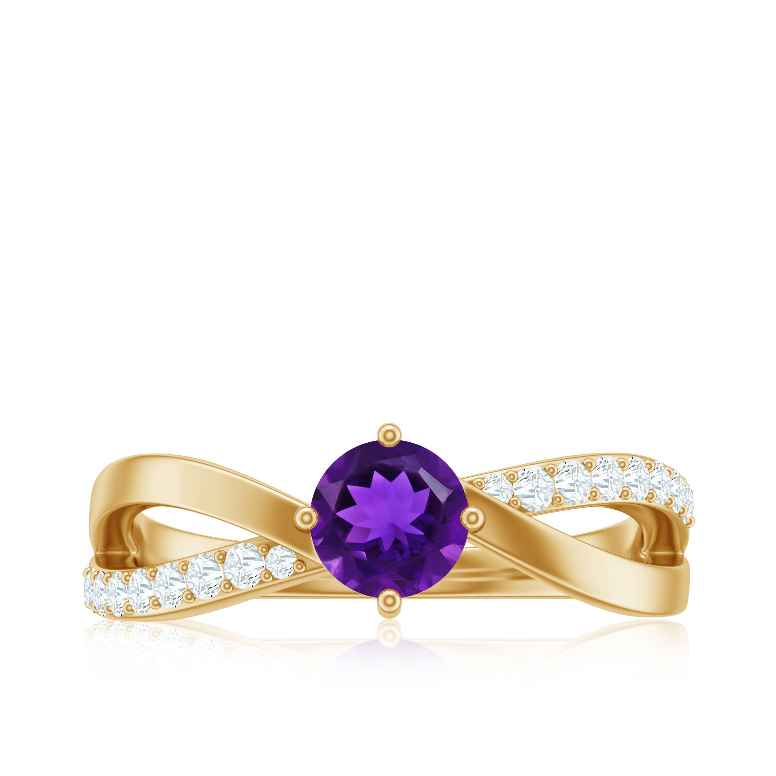 Infinity Shank Amethyst Solitaire Ring with Diamond