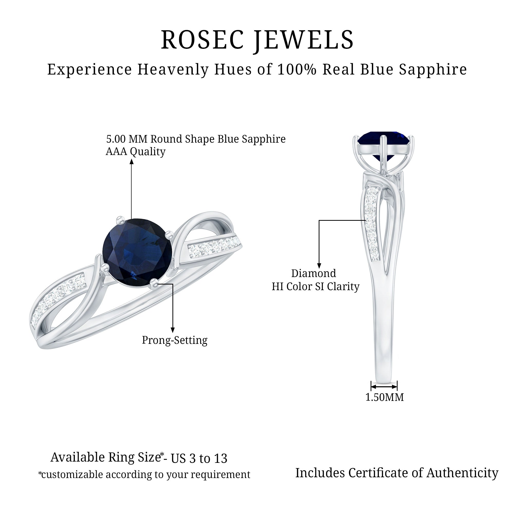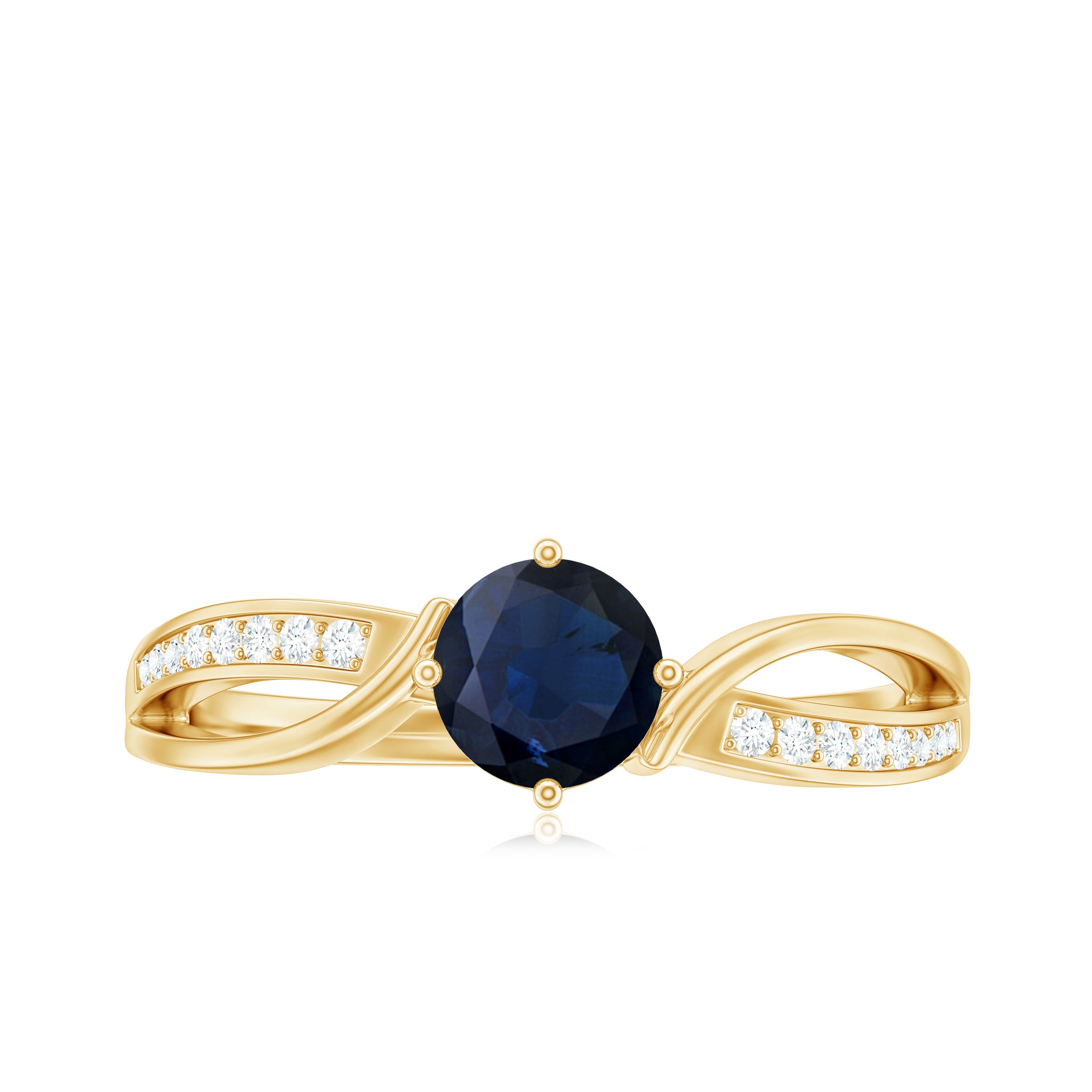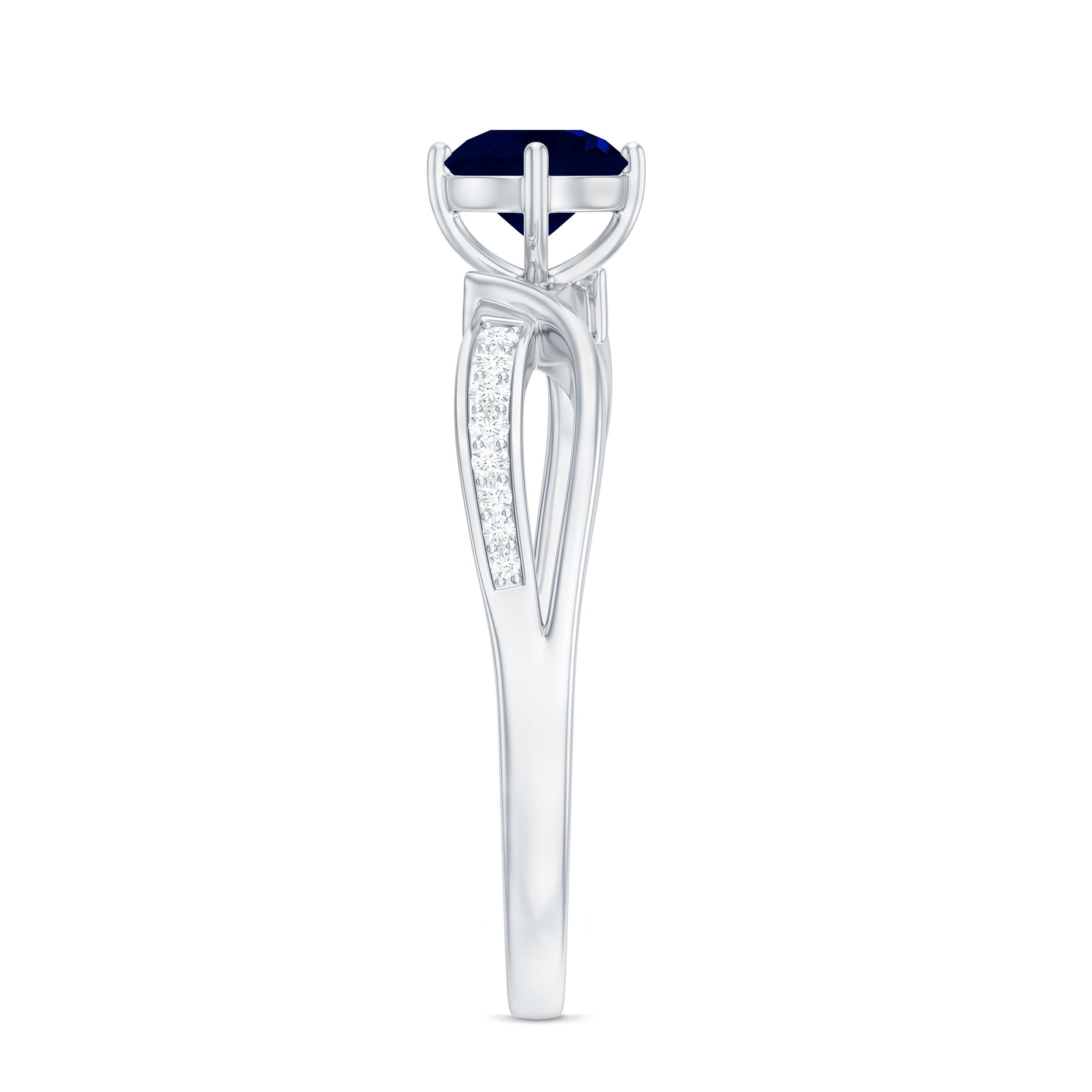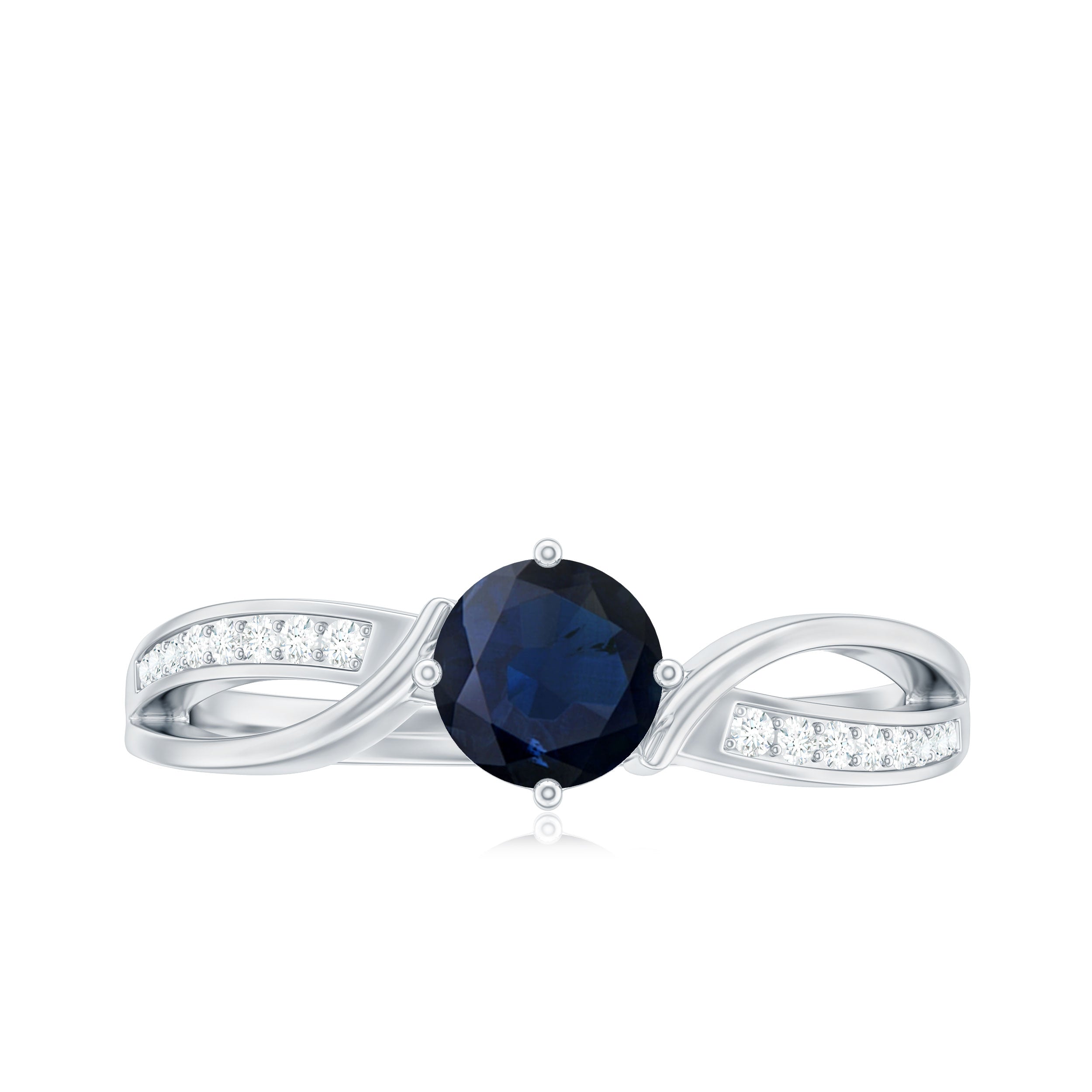 Infinity Shank Round Blue Sapphire Engagement Ring with Diamond
