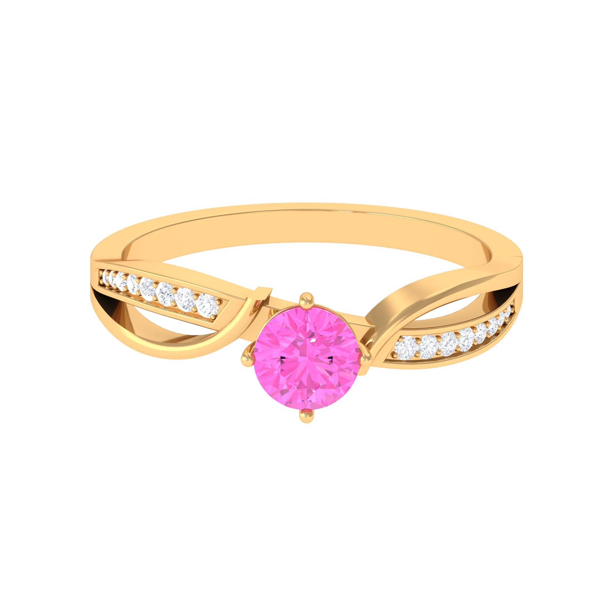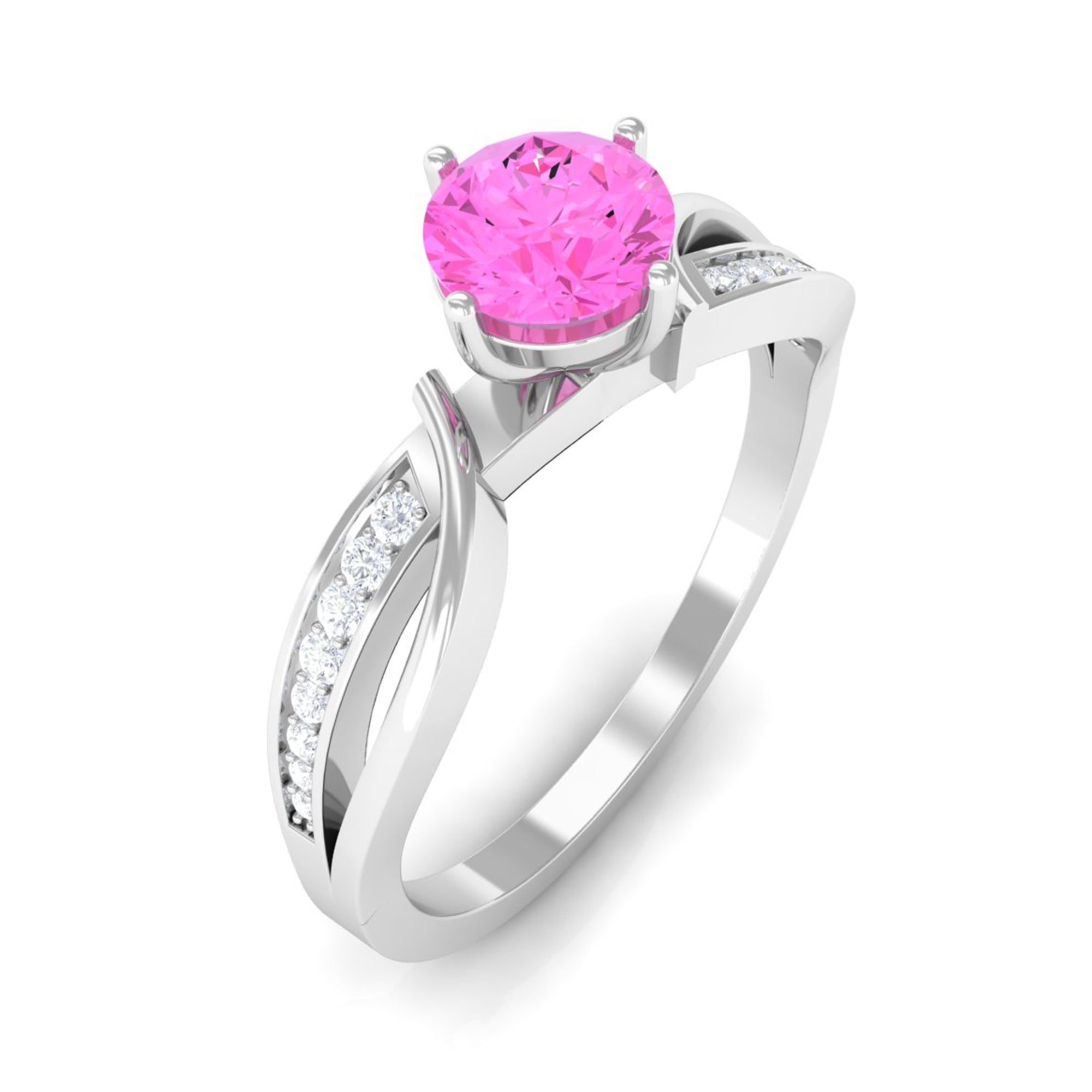 Infinity Shank Round Pink Sapphire Engagement Ring with Diamond