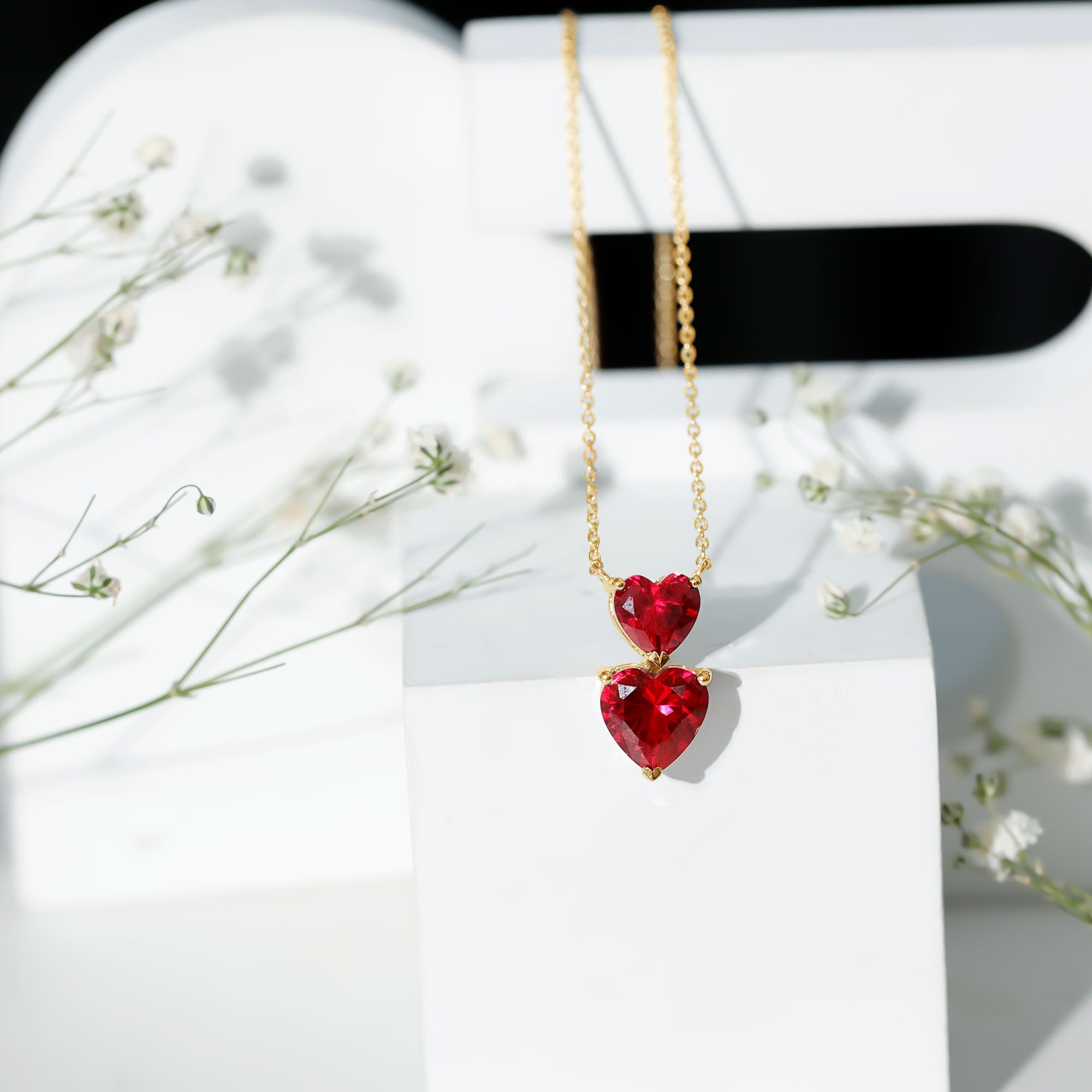 This Lab Created Ruby Necklace is a beautiful symbol of everlasting love and an unbreakable bond, radiating a rich red glow. Designed with 2 Heart Shaped Lab Created Ruby measuring 10 MM and 8 MM, perfectly stacked to represent the deep connection shared between two hearts, this Red Ruby Necklace is a stunning display of love. It features AAAA Quality Lab Ruby that shines with timeless elegance. A perfect gift for anniversaries, Valentines Day, birthdays or any occasion to show someone just how much they mean to you. This Heart Locket is a meaningful way to celebrate a love that endures forever.
