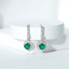 Lab Created 6 MM Emerald Moissanite Drop Dangle Earrings in Silver