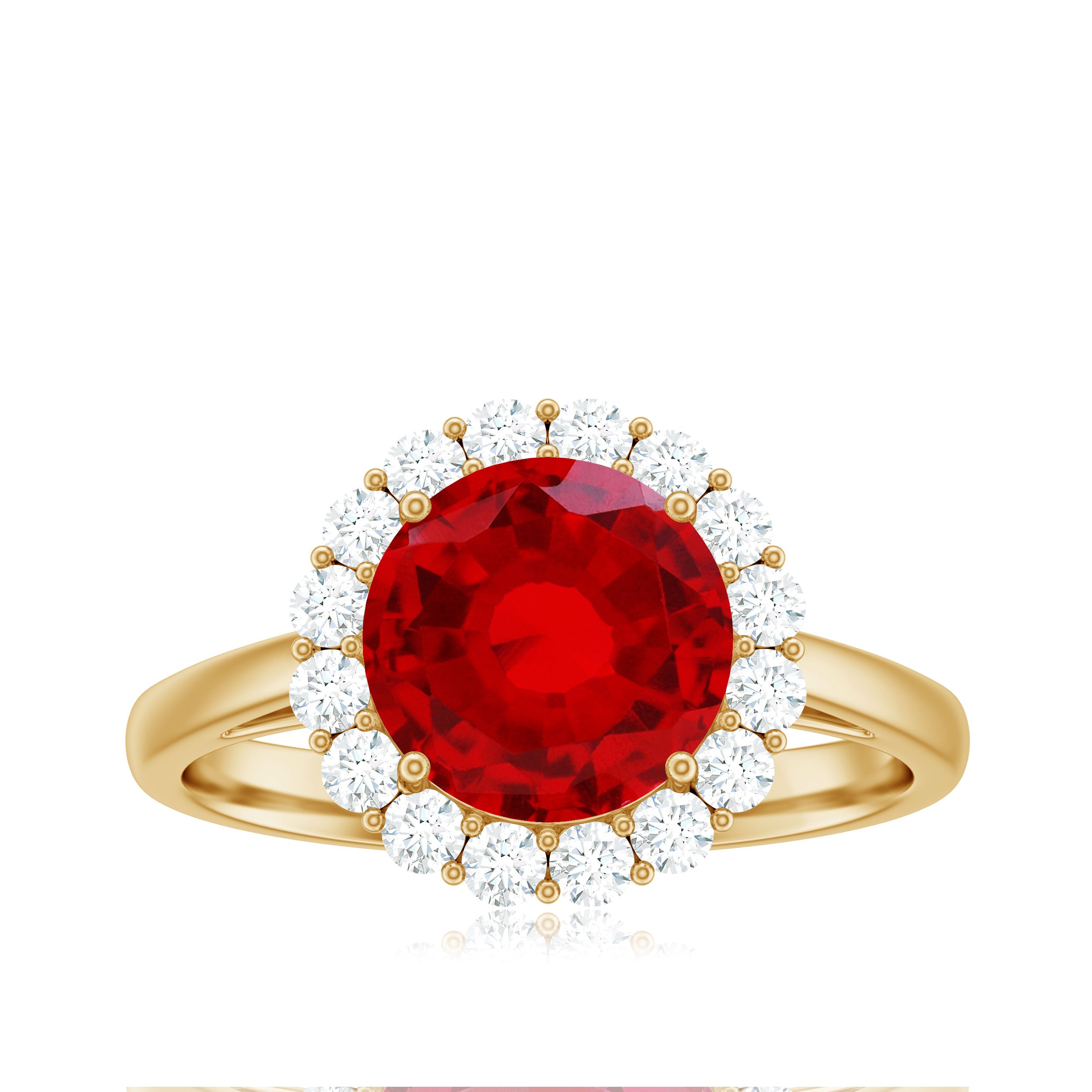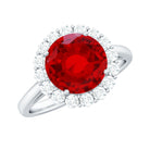 Lab Created 8MM Ruby Halo Engagement Ring with Diamonds