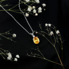Make a striking impression on any special occasion with this Solitaire Pendant Necklace, designed to enhance your radiance. It features an Oval Cut 8X10 MM Lab Created Yellow Sapphire in a Prong Setting, complemented by dazzling Round Moissanite gemstones. This Lab Grown Yellow Sapphire Pendant Necklace, complete with a Rabbit Ear Bail and Chain, showcases a vibrant hue that is sure to attract attention. This exquisite and classic Oval Necklace is a true work of art, embodying the suns color with its bright and captivating charm. Not only is it more brilliant and radiant than traditional stones, but it is also more resilient for everyday wear. The result is a timeless birthstone look with heirloom quality. Meticulously designed with precision and thoughtfulness, our Yellow Gem Necklace radiates classic elegance and refinement. The premium materials and skilled artistry guarantee enduring beauty and resilience, making it a beloved item that can be handed down through generations. Whether it is a gift for someone special or a personal keepsake, this necklace is destined to be treasured for years to come.