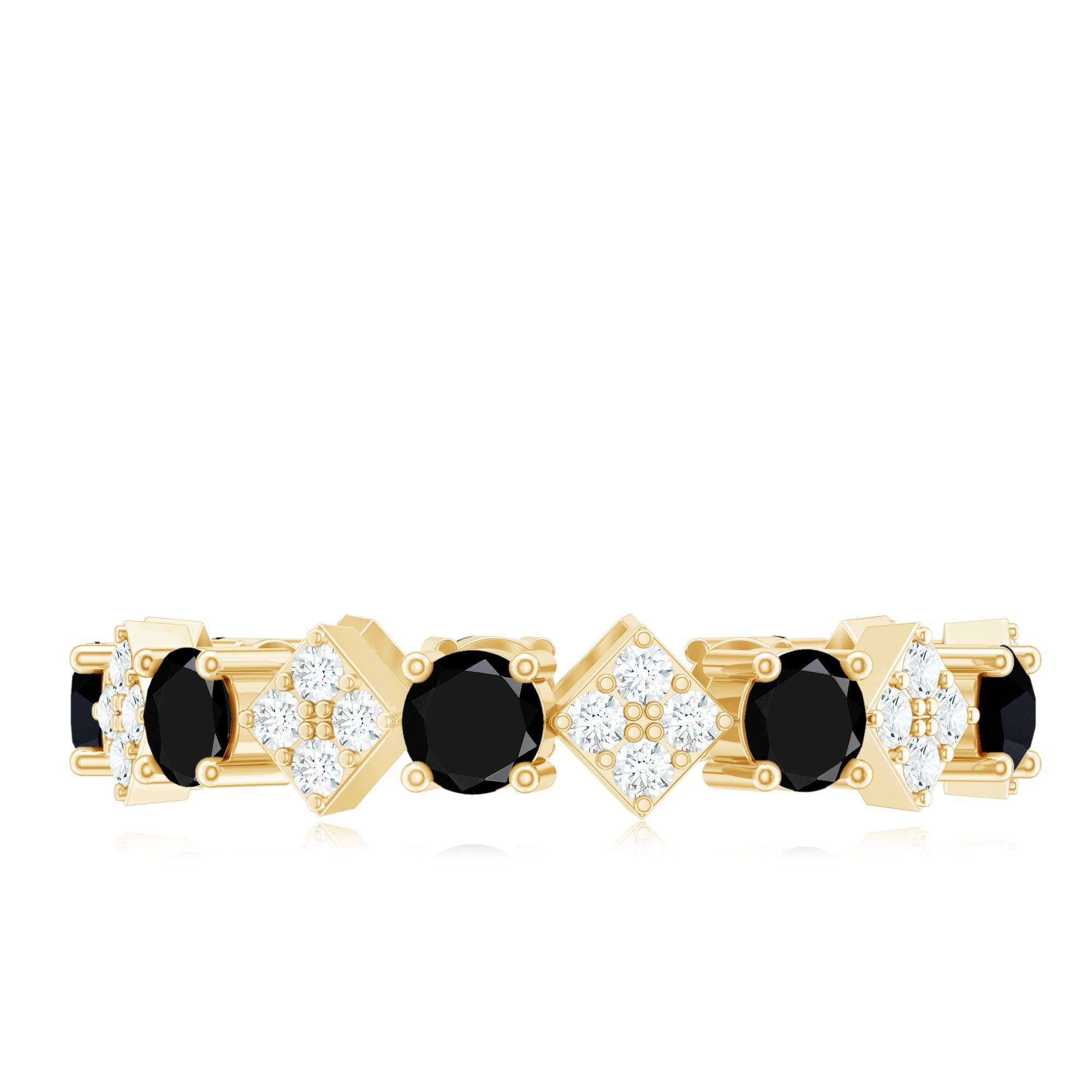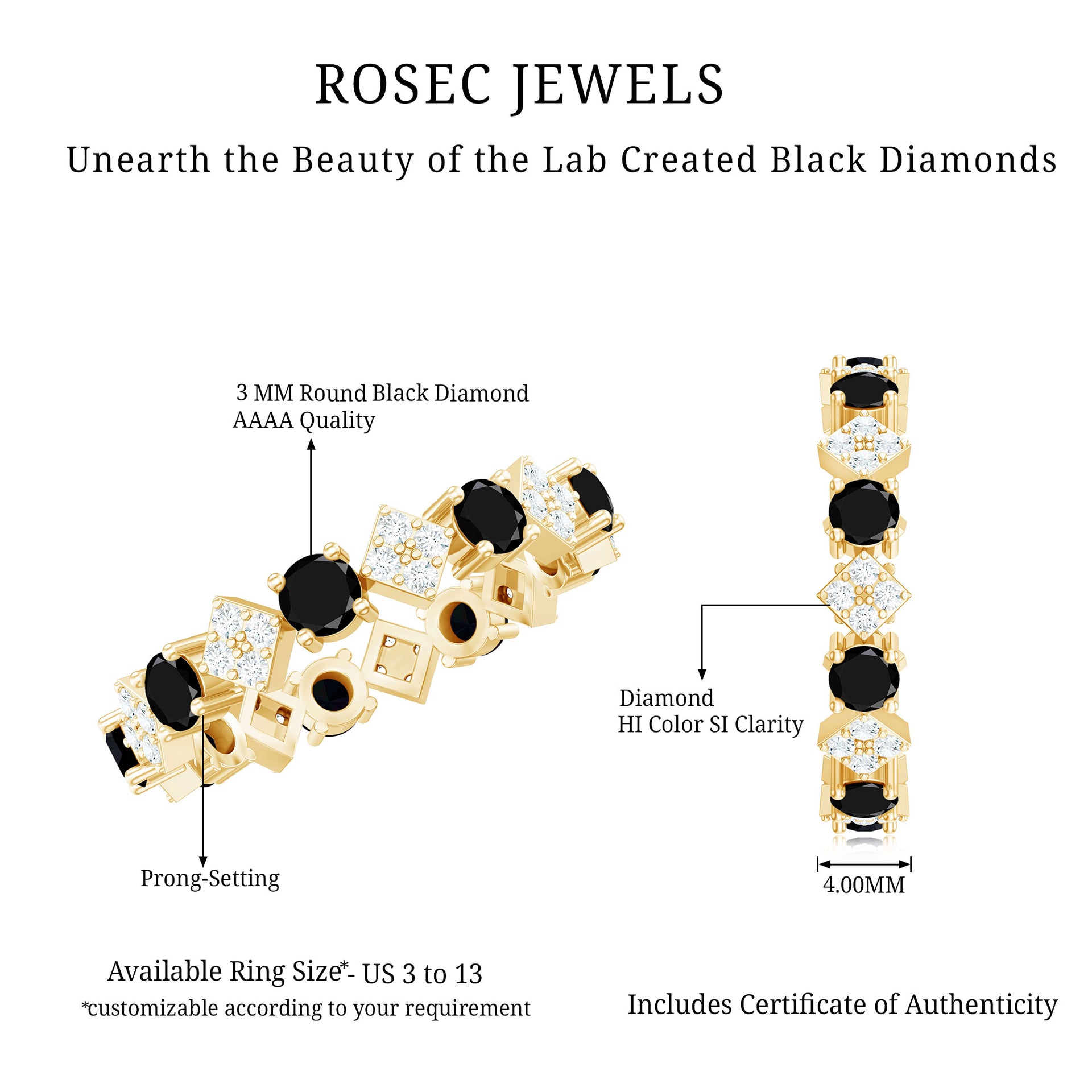 Celebrate her special occasion with this gorgeous Full Eternity Ring, set with Round Shape created Black Diamond and Diamond stones in prong setting. Made with solid gold, this ring adds a touch of luxury to any outfit.