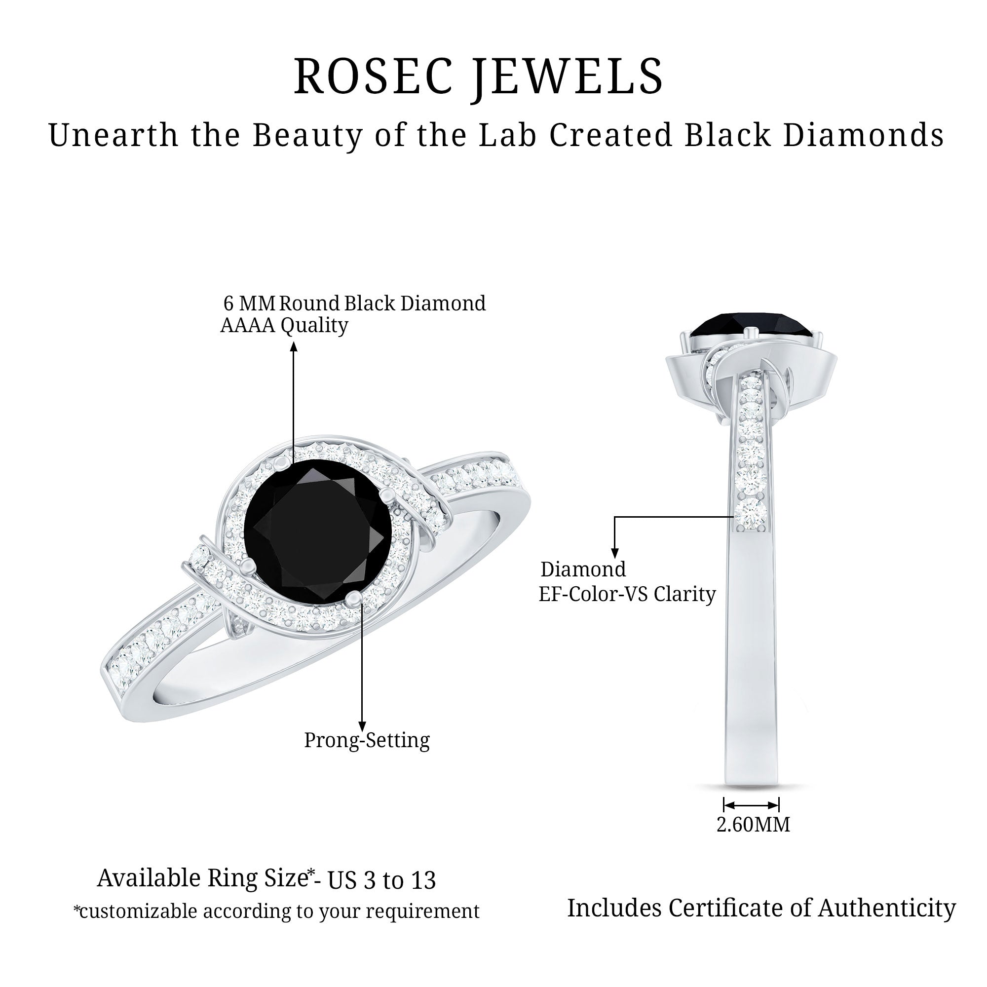 Captivating in its allure, this Halo Engagement Ring adorned with a 6 mm round shaped Lab Created Black Diamond set as a centerpiece, highlighted by White Lab Grown Diamond gemstones is a masterpiece of elegance. Crafted with precision and passion, the contrasting hues create a mesmerizing dance of light. This uniquely crafted Created Black Diamond Ring by Aaaa Quality Black Diamond and Ef-Vs Diamond which defines the testament to the artistry, making it a striking choice for those who appreciate the extraordinary.