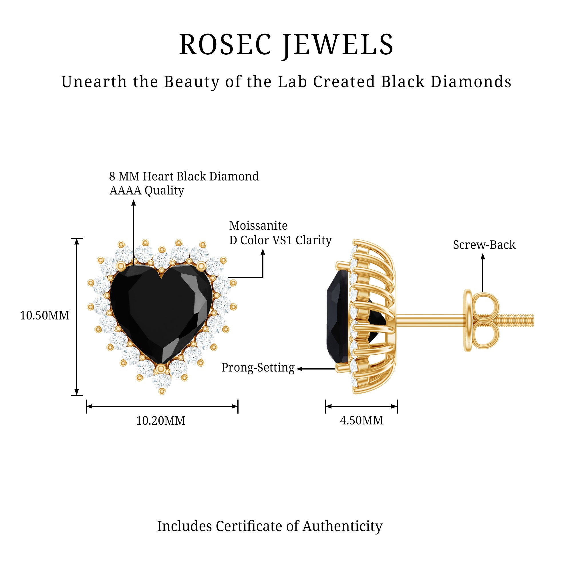 Lab Created Black Diamond Heart Stud Earrings With Moissanite Halo