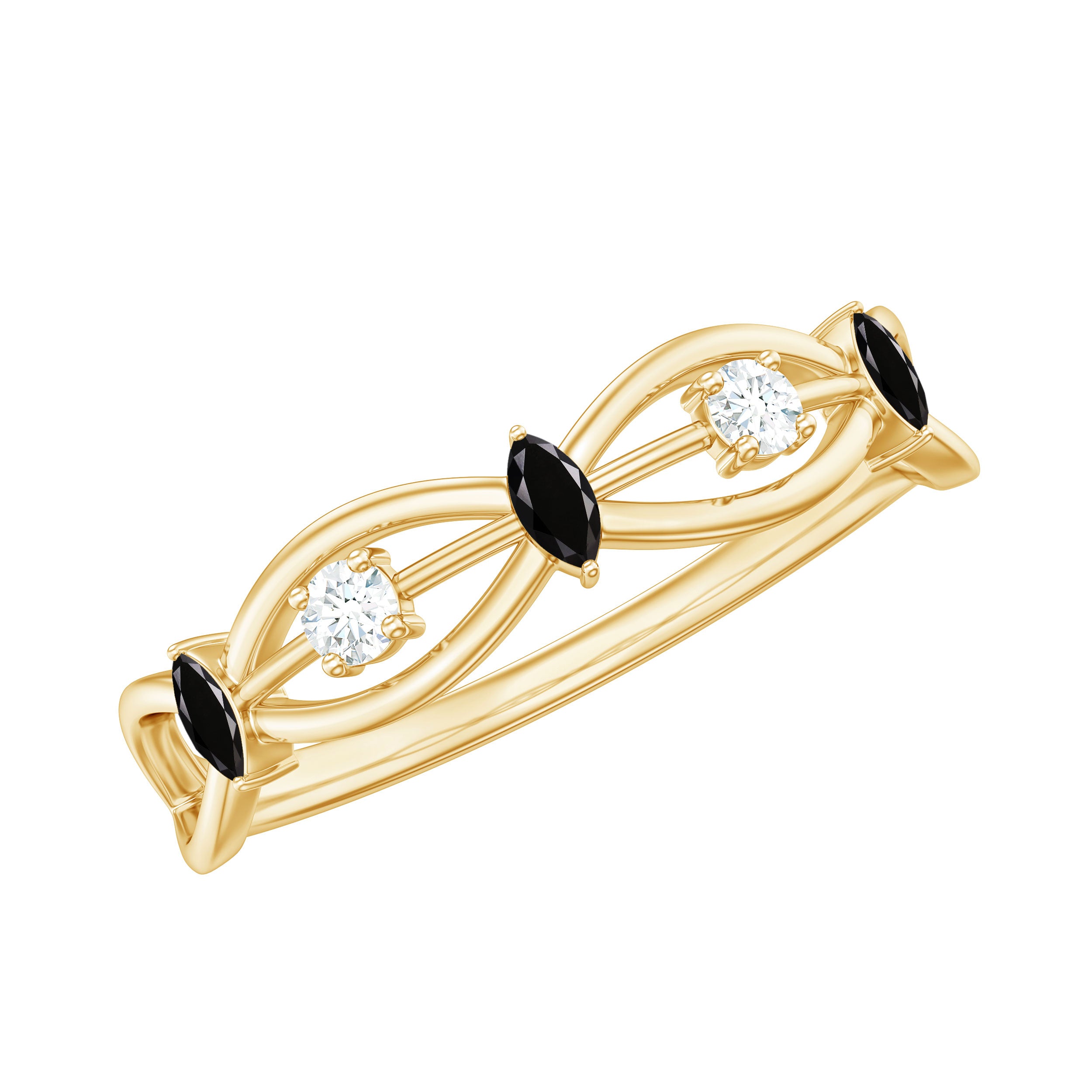 Elevate your style with the classy Created Black Diamond Minimal Promise Band. It features marquise cut lab created Black Diamonds and real white Moissanite on a designer shank. Snag this versatile piece for a hassle-free, simple, and classic look.