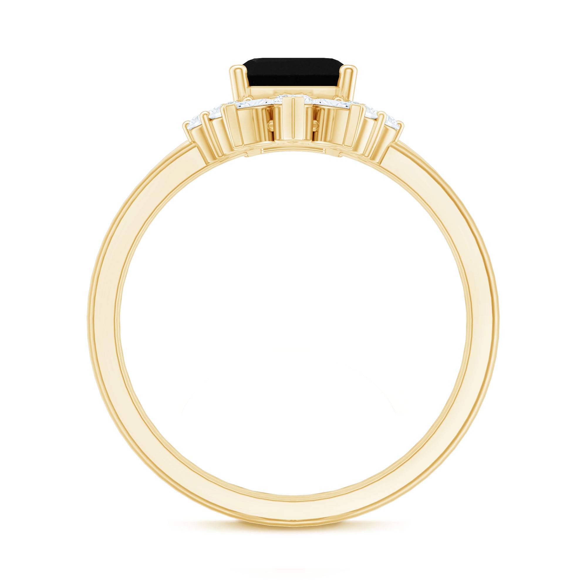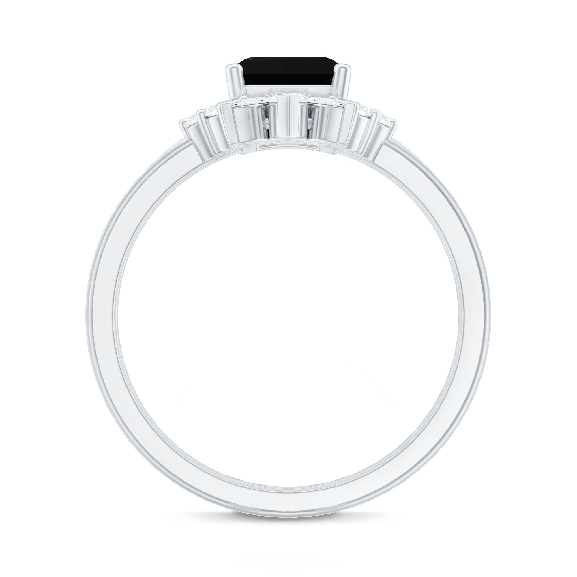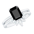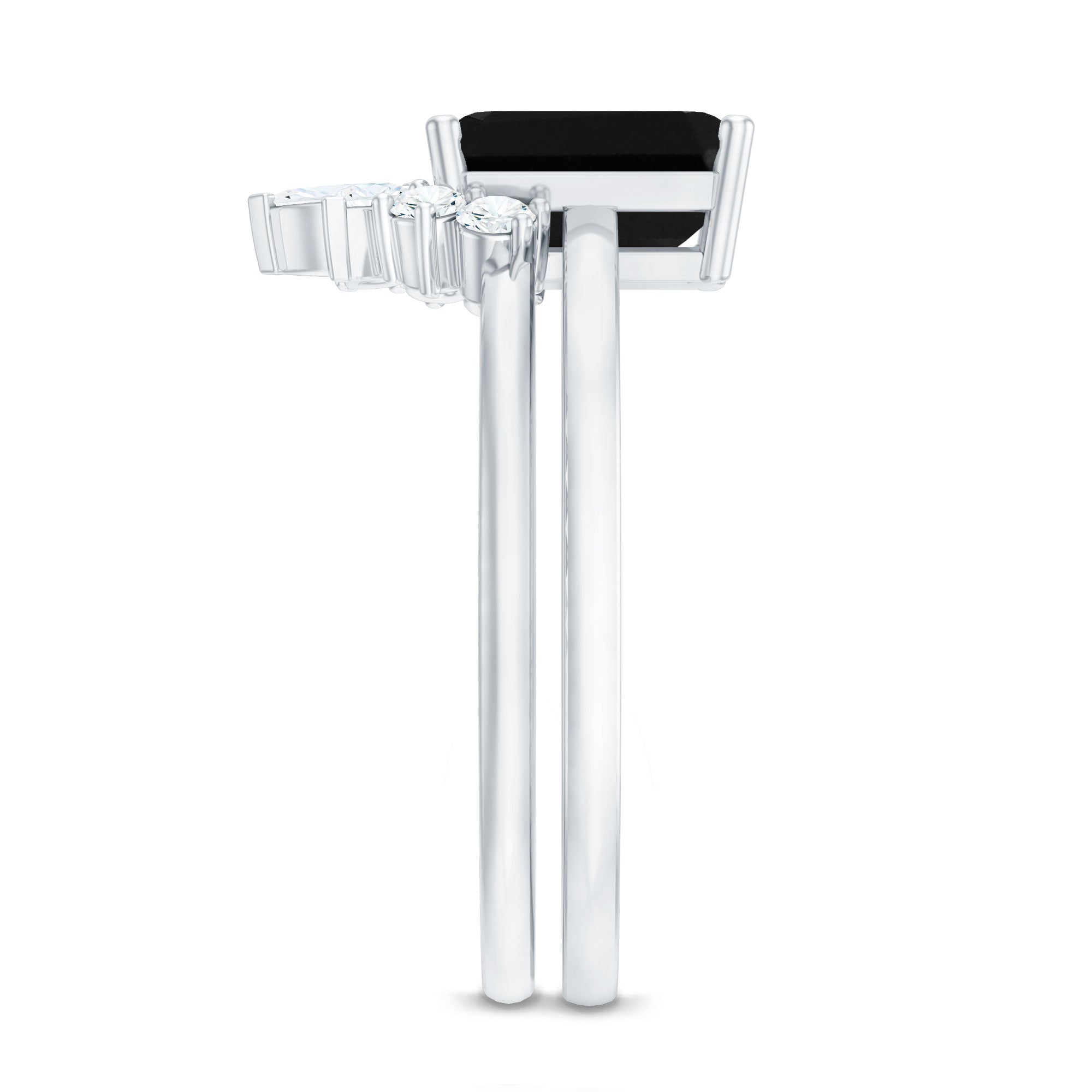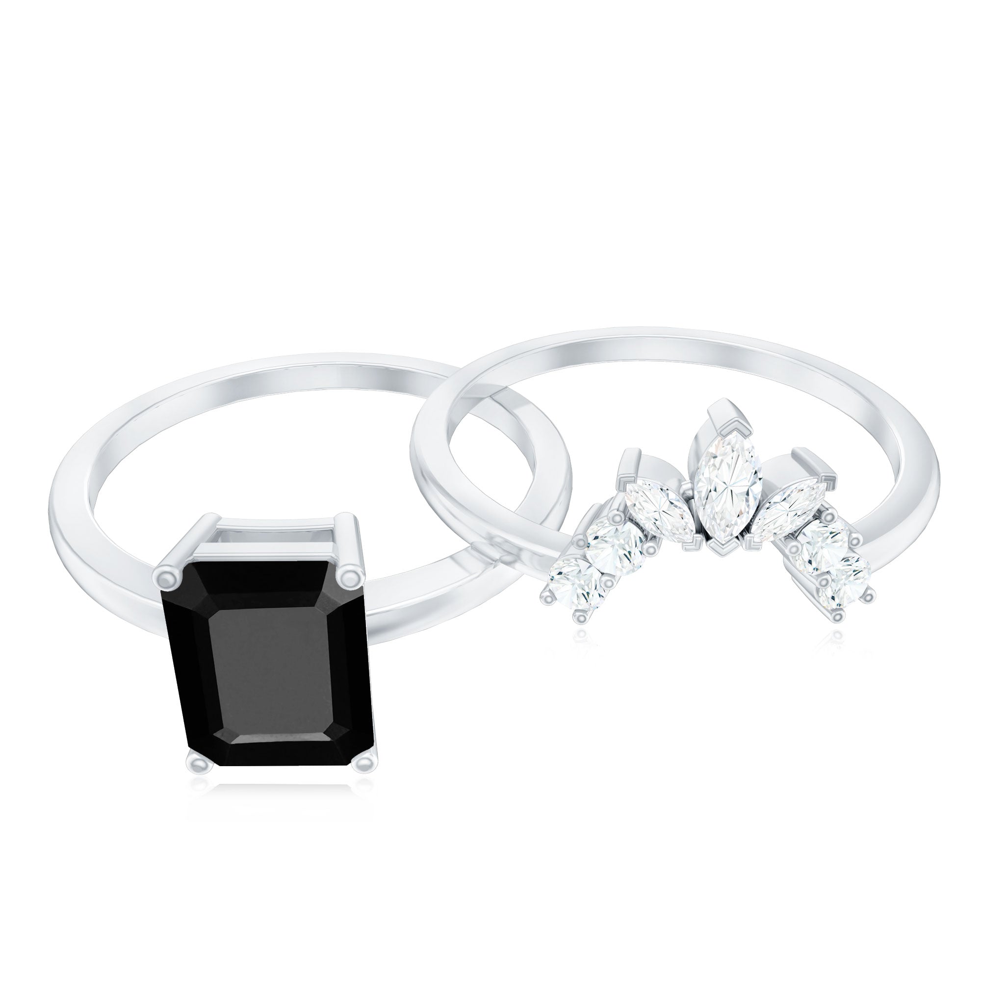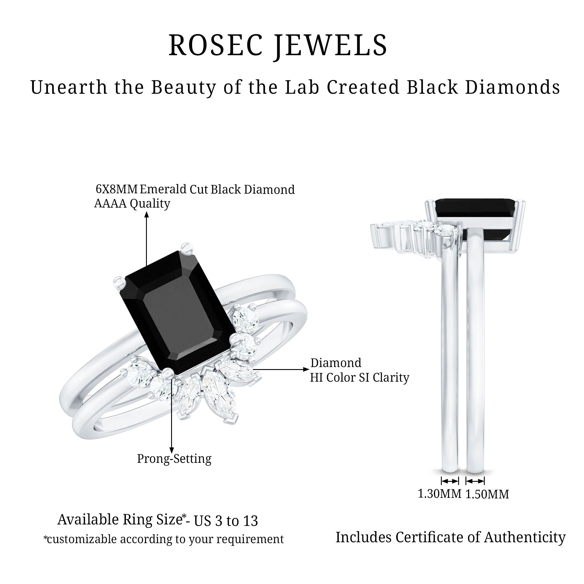 Crafted with elegance, this Wedding Ring Set features an Emerald Cut Lab Created Black Diamond secured in 4 Prong Setting while more Marquise and Round Diamonds studded on an enhancer ring. The Solitaire Ring Set is composed of Solid Metal. Express your love without saying much by giving her this captivating Ring Set to make her feel even more special.