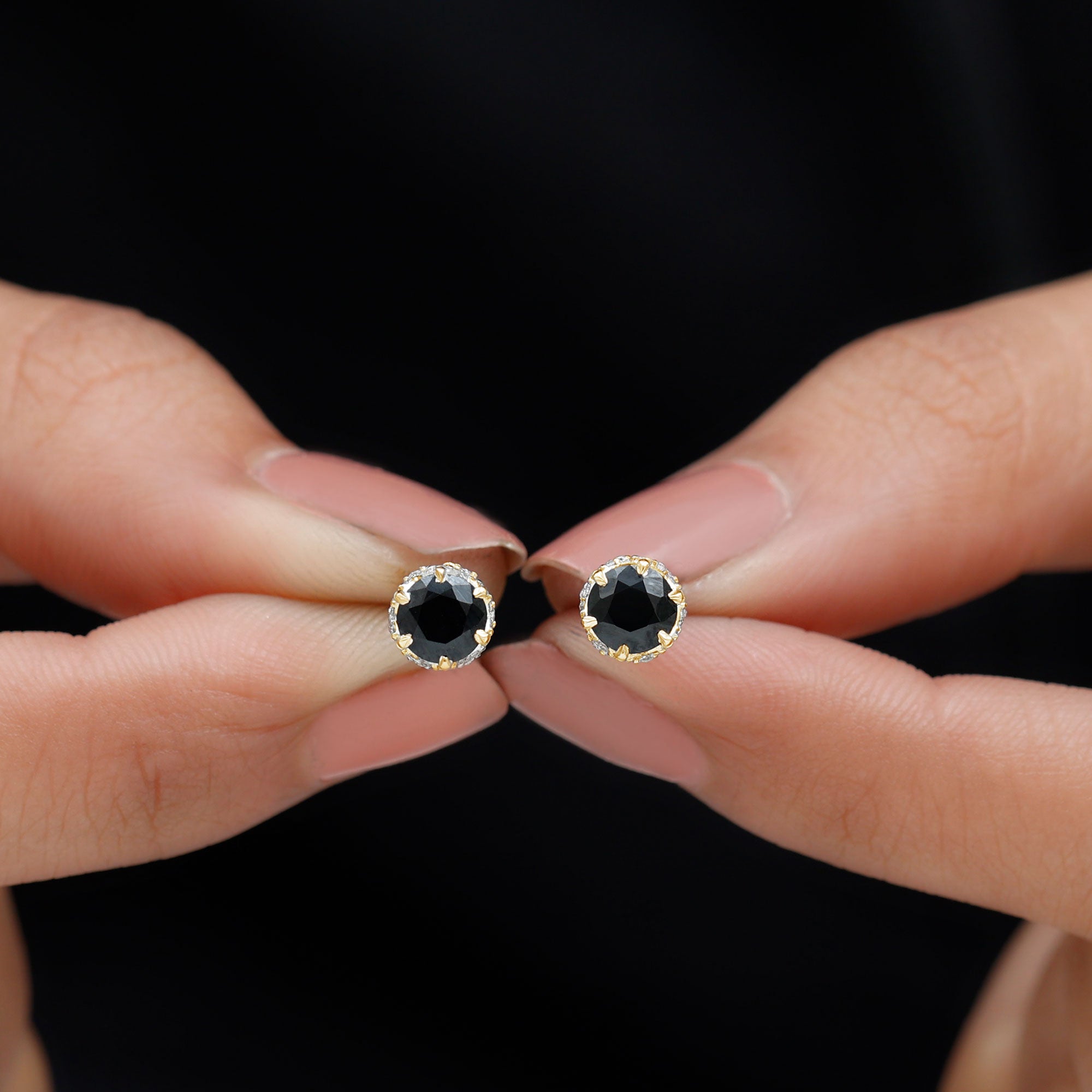 Delicate, charming, and full of character, the Lab Created Black Diamond Earrings bring a fresh and elegant touch to your jewelry collection. They feature 5 MM round cut lab created black diamond set securely in 6 claw prong setting, giving it just the right balance of sparkle and sophistication. The center stone is flanked by a floral design of glittering white diamonds, carefully arranged to resemble soft petals, adding a hint of romance to the overall design. The mix of the dark center and bright outer stones gives the Black Diamond Stud Earrings a graceful contrast that stands out beautifully in any setting. Thoughtfully crafted with fine attention to detail, they are made to last and offer a comfortable fit, thanks to their secure screw back closure. These Black and White Diamond Earrings are perfect for everyday wear or for adding a bit of sparkle to special occasions, from dinners and parties to meaningful celebrations. With their soft floral pattern and timeless shine, the Solitaire Stud Earrings make a thoughtful gift for someone special or a beautiful piece to treat yourself. They represent elegance, balance, and quiet confidence, qualities that make them easy to wear and hard to forget. Arriving in a premium jewelry box, ready for gifting, these floral earrings are a lovely addition to any collection.