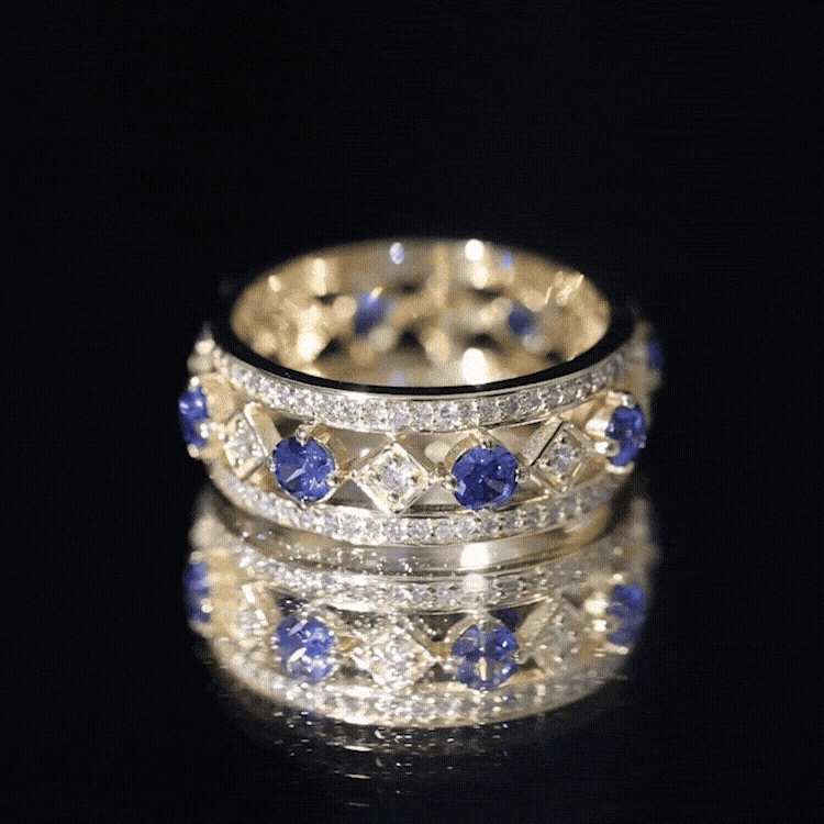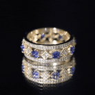 Are you in search of a ring that combines sleekness with a vibrant personality? Allow us to introduce your new favorite: the Lab Created Blue Sapphire Ring, which embodies modern elegance with a hint of luxury. This Full Eternity Ring is distinguished by its striking design, showcasing round shape lab created blue sapphire stones interspersed with dazzling round cut diamonds, all set in an alternating pattern. Whether you seek a distinctive wedding band or a wide band ring to complement your existing collection, this piece is an ideal choice. It boasts a modern aesthetic while offering enough sparkle and boldness to capture attention. Furthermore, the combination of Created Blue Sapphire and diamonds creates a stylish contrast that is both sophisticated and edgy. The Lab grown sapphire stones impart a rich essence, while the diamonds contribute the perfect touch of brilliance. Together, they form a ring that is both understated and elegant, suitable for daily wear or special events. This Created Sapphire and Diamond Ring serves as a testament to your style and self-assurance. Whether you are presenting it as a gift to a loved one or indulging yourself, this Vintage Eternity Band is designed to be worn, cherished, and admired. So why choose the ordinary when you can showcase a band that is both fashionable and entirely unique.