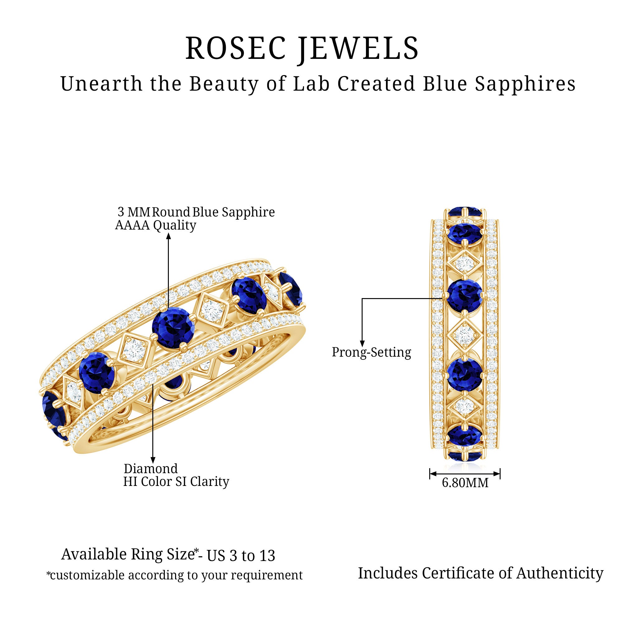 Lab Created Blue Sapphire and Diamond Full Eternity Band Ring