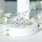Lab Created Blue Sapphire and Moissanite Snowflake Stud Earrings