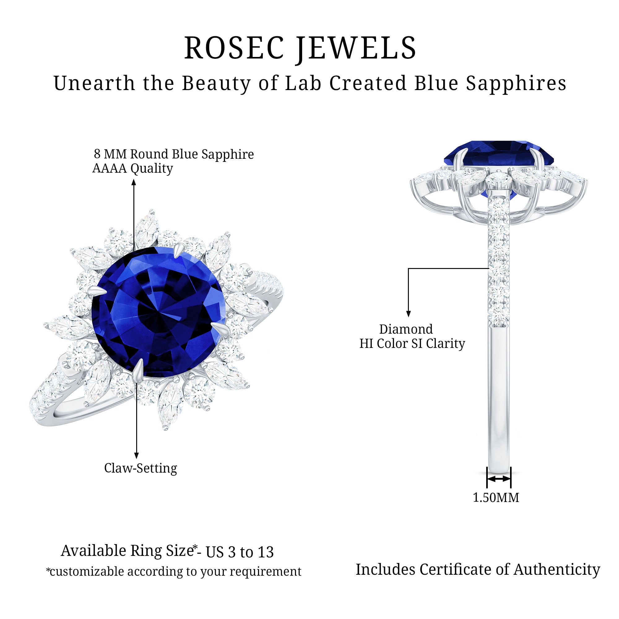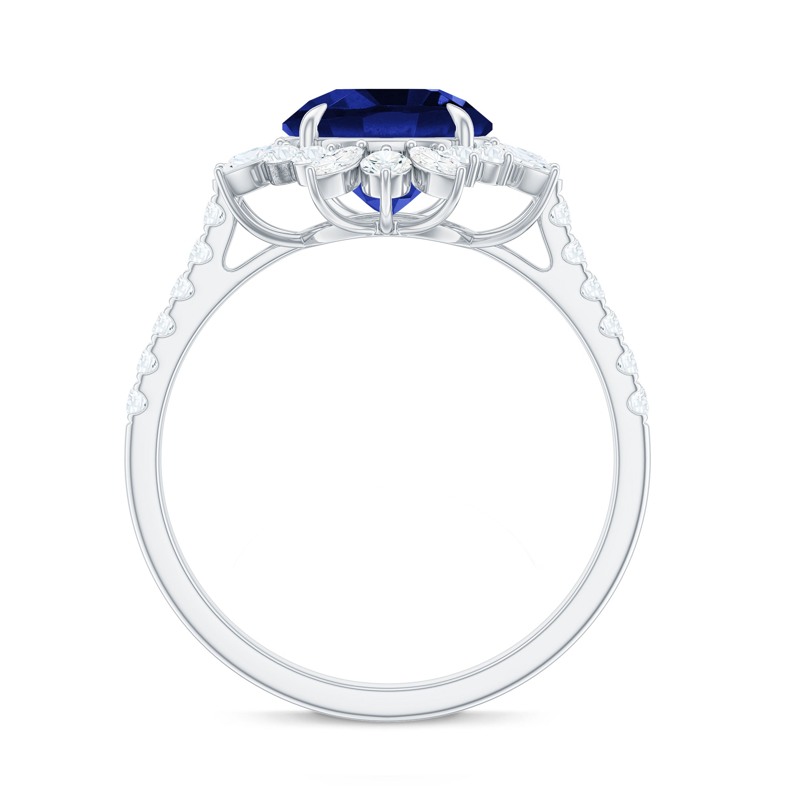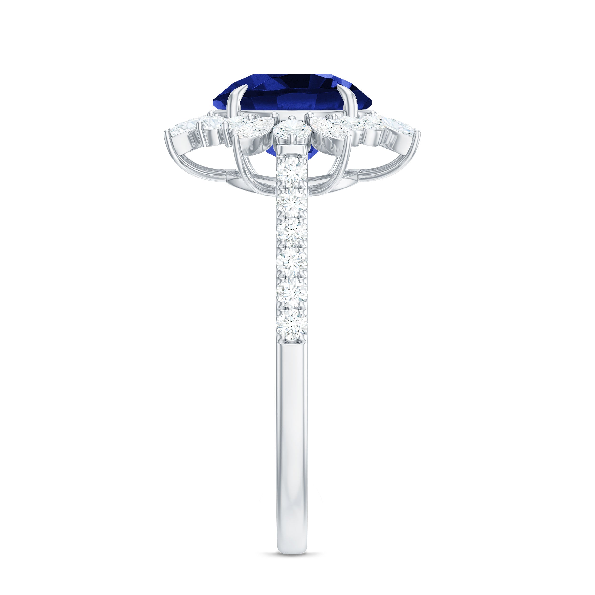 Lab-Created Blue Sapphire Cocktail Ring with Diamond Floral Halo