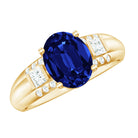 Capture the heart of your beloved with the breathtaking Solitaire Ring. This extraordinary ring features an exquisite Oval Cut Created Blue Sapphire, delicately set in a four-prong setting alongside shimmering Diamond stones. This statement ring is a true masterpiece and an essential addition to any jewelry collection.