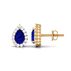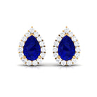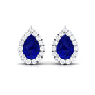 Lab Created Blue Sapphire Teardrop Stud Earrings with Diamond Halo