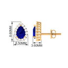 Vintage charm meets modern sparkle in these beautifully designed Lab Created Blue Sapphire Earrings, perfect for adding a touch of elegance to any look. They feature a 6X8 MM pear shaped lab created blue sapphire set at the center, surrounded by a halo of round cut real diamonds that catch the light from every angle. The combination of the AAAA quality lab created blue sapphire and sparkling HI-SI quality diamonds creates a striking contrast that feels luxurious yet wearable. Whether dressing up for a special evening or adding a polished touch to everyday outfits, these Sapphire Teardrop Earrings effortlessly elevate your style. Their design draws inspiration from vintage jewelry, with delicate detailing that makes each pair feel unique and thoughtfully crafted. Comfort and security are just as important as style, so the studs come with a screw back closure, keeping them in place all day without compromising on elegance. These Halo Stud Earrings are ready to impress as a gift for birthdays, anniversaries, or special moments. Lightweight, sophisticated, and designed to be noticed, these Blue Sapphire and Diamond Earrings offer the perfect balance of classic elegance and modern flair, making them a standout piece in any jewelry collection.