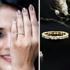 Wrap your finger in some shimmer and let this Diamond Wedding Ring be the sparkle that complements your glow. Crafted with round shaped lab-grown diamonds set in prong setting, this Stackable Ring creates an endless pattern of sparkle that represents eternal love and commitment. Handcrafted using lab made gemstones, this Diamond Anniversary Ring is a sustainable and ethical choice that does not skimp on brilliance or quality. Rosec Jewels offers a variety of metal colors and purity options to select from. This Full Eternity Ring shines with EF-VS Quality Lab Grown Diamonds, providing an affordable alternative that cuts costs compared to natural diamonds. With its timeless and eye catching design, this Lab Created Diamond Eternity Ring is perfect for a wedding ring or an anniversary band, marking the beginning of a new chapter. This Wedding Anniversary Band blends elegance with modern style, making it perfect for those looking for a touch of luxury.