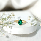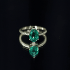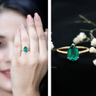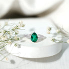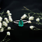 Lab Created Emerald 7X10 mm Pear Shape Engagement Ring With Hidden Moissanite