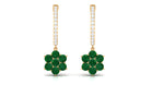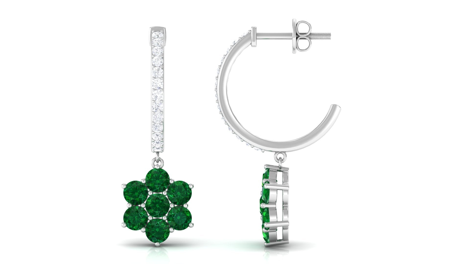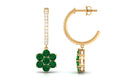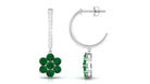 Lab Created Emerald and Diamond Flower Hoop Drop Earrings