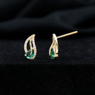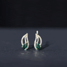 Lab Created Emerald and Diamond Leaf Stud Earrings