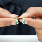 These Lab Grown Emerald Earrings are the perfect mix of timeless elegance and the beauty of nature, giving you a classy vibe with their lasting charm. Made from high quality metal, these Leaf Stud Earrings showcase a style and beauty that will endure through the years. With meticulous attention to detail, these Studs feature a 4X6 MM pear cut brilliant lab created emerald set in prong setting at the center of a leaf design, embellished with delicate diamond stones. Elevate your look with the stunning blend of rich green tones and dazzling sparkle, making these Designer Stud Earrings an ideal and glamorous accessory for any special occasion or daily luxury. These Leaf Earrings are a must-have for everyday wear, boasting a classic beauty that will be treasured for years to come. Enhance your outfit with this timeless beauty, featuring AAAA quality lab made emeralds and HI-SI quality diamonds that radiate sparkle.