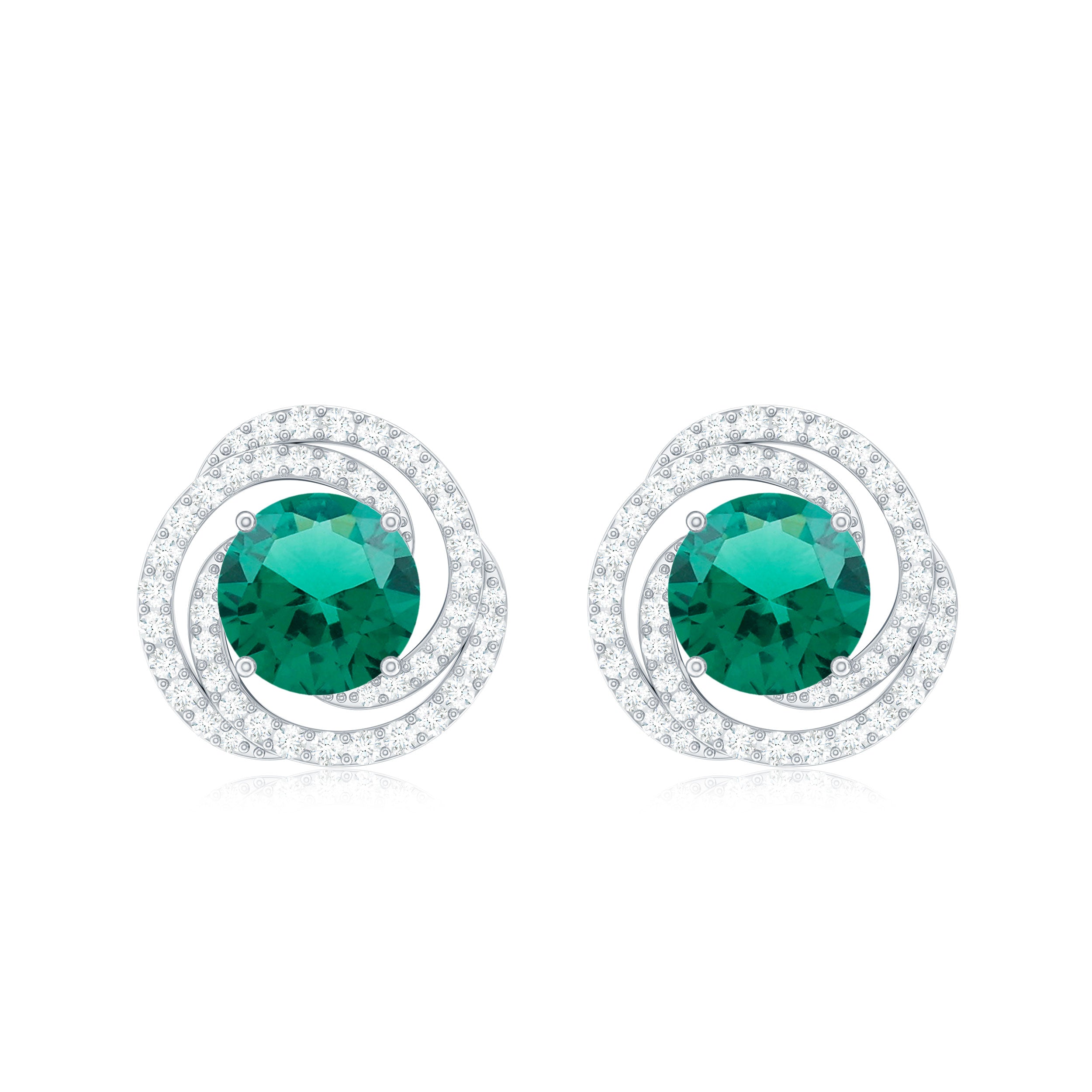 Lab Created Emerald and Diamond Spiral Stud Earrings