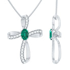 Lab Created Emerald and Moissanite Cross Necklace In Silver