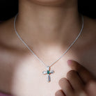 This Emerald Infinity Cross Pendant Necklace beautifully symbolizes your infinite love, commitment, and spirituality. Achieve a versatile style with this lovely and distinctive Cross Necklace. Display your enduring faith with this piece, which showcases a 4X6 MM Oval Shape Lab Grown Emerald at its center, adorned with Moissanite stones across the Cross. Made from 925 Sterling Silver and plated with 14K White Gold, this Religious Necklace combines faith and fashion effortlessly. It hangs from an adjustable Cable Chain, making it a perfect accessory. This Emerald and Moissanite Necklace is specially designed for your Christmas festivities. You can gift this pendant to your loved one as you celebrate your faith together. Your Christian Cross Necklace will arrive in a velvet pouch, complete with an authentication certificate.