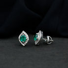Lab Created Emerald Designer Stud Earrings with Moissanite