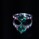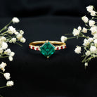 Lab Created Emerald Engagement Ring with Lab Created Ruby and Moissanite