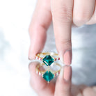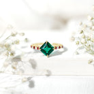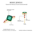 Reveal your romantic journey with this enchanting Lab Created Emerald Engagement Ring, adorned with vivid Lab Created Rubies and sparkling Moissanites as side stones. The focal point of this Timeless Engagement Ring features a stunning Asscher Cut Lab Created Emerald, positioned as a centre stone in Claw Setting, which permits optimal light exposure and highlights its enchanting green color. Flanking the central stone are created ruby gemstones, which introduce a vibrant splash of color and sophistication to the piece. The band is embellished with glimmering moissanite stones, which harmoniously enhance the center and side stones, contributing additional brilliance to the overall design. This Solitaire Engagement Ring is an ideal addition to your jewelry collection, enhancing your personal style and revealing your inner brilliance as you desire. We utilize the highest quality in created emeralds, featuring an exquisite green that will elevate the allure of your jewelry. This Statement Engagement Ring comes in a beautiful jewelry box and is available in US sizes 3 to 13, so it’s easy to find the perfect fit. Whether youre gifting it or wearing it yourself, this Asscher Engagement Ring is made to be treasured. Sweet, sparkling, and full of love, this ring says it all, no words needed.