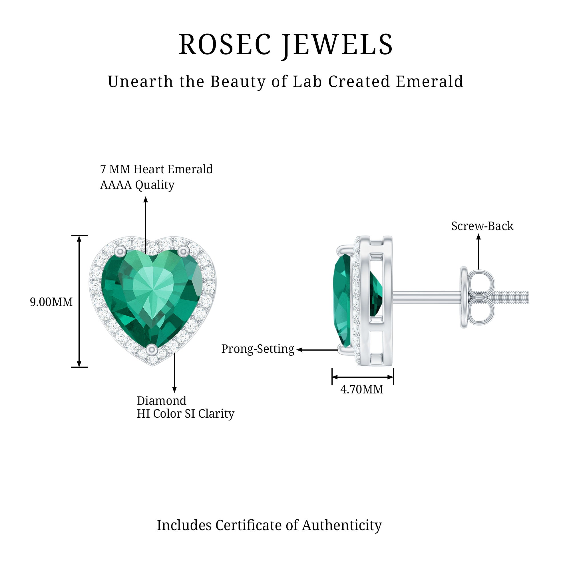 Lab Created Emerald Heart Stud Earrings with Diamond Halo