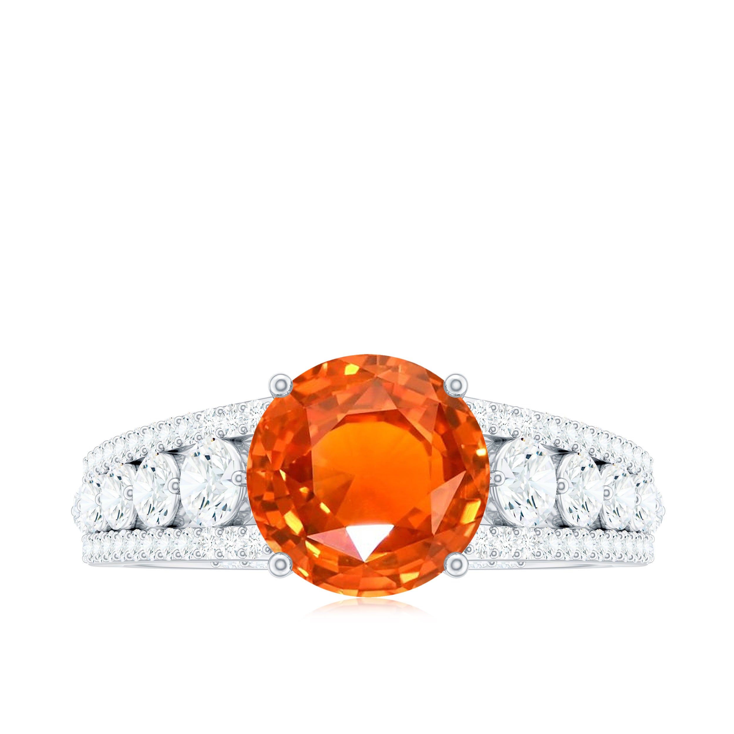 Lab Created Orange Sapphire and Moissanite Engagement Ring