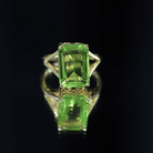 The sparkling green shade of the Lab Created Peridot Engagement Ring is truly eye-catching, reflecting light beautifully from every angle. It features a 10X14 MM Emerald Cut Lab Created Peridot, set in Basket Setting that allows maximum light to shine through the stone. This Solitaire stone sits prominently in the center, making it the most visually appealing and standalone piece of jewelry. This unique Solitaire Engagement Ring symbolizes good fortune and eternal love. Crafted from Yellow Gold Plated Silver, this Emerald Cut Engagement Ring adds a modern flair for women who want to shine in any setting. The Split Shank design brings a timeless elegance with a vintage feel, ensuring it remains a classic piece. Known for its incredible sparkle and brilliance, this Statement Ring boasts a unique and enchanting beauty that places it at the forefront of the gemstone world, perfect for your special moments. Its vibrant light green color, combined with its distinctive features, makes it an ideal choice for anyone seeking a unique jewelry piece that symbolizes rarity and sophistication. It truly captivates with its stunning colors.