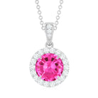 Lab-Created Pink Sapphire Halo Pendant with Diamond