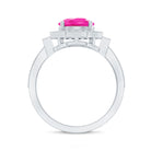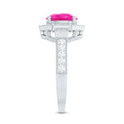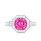 Lab Created Pink Sapphire Vintage Engagement Ring with Diamond Halo