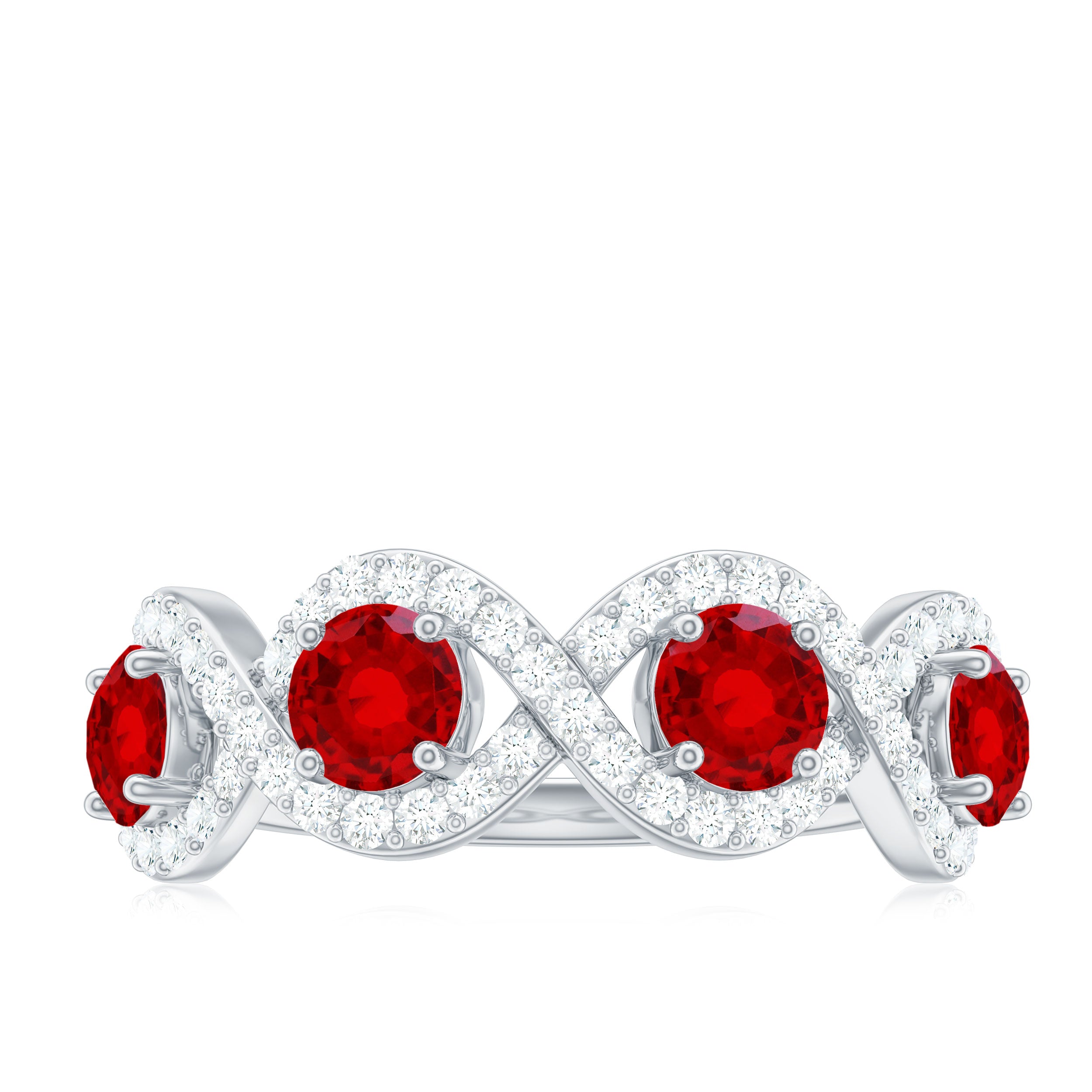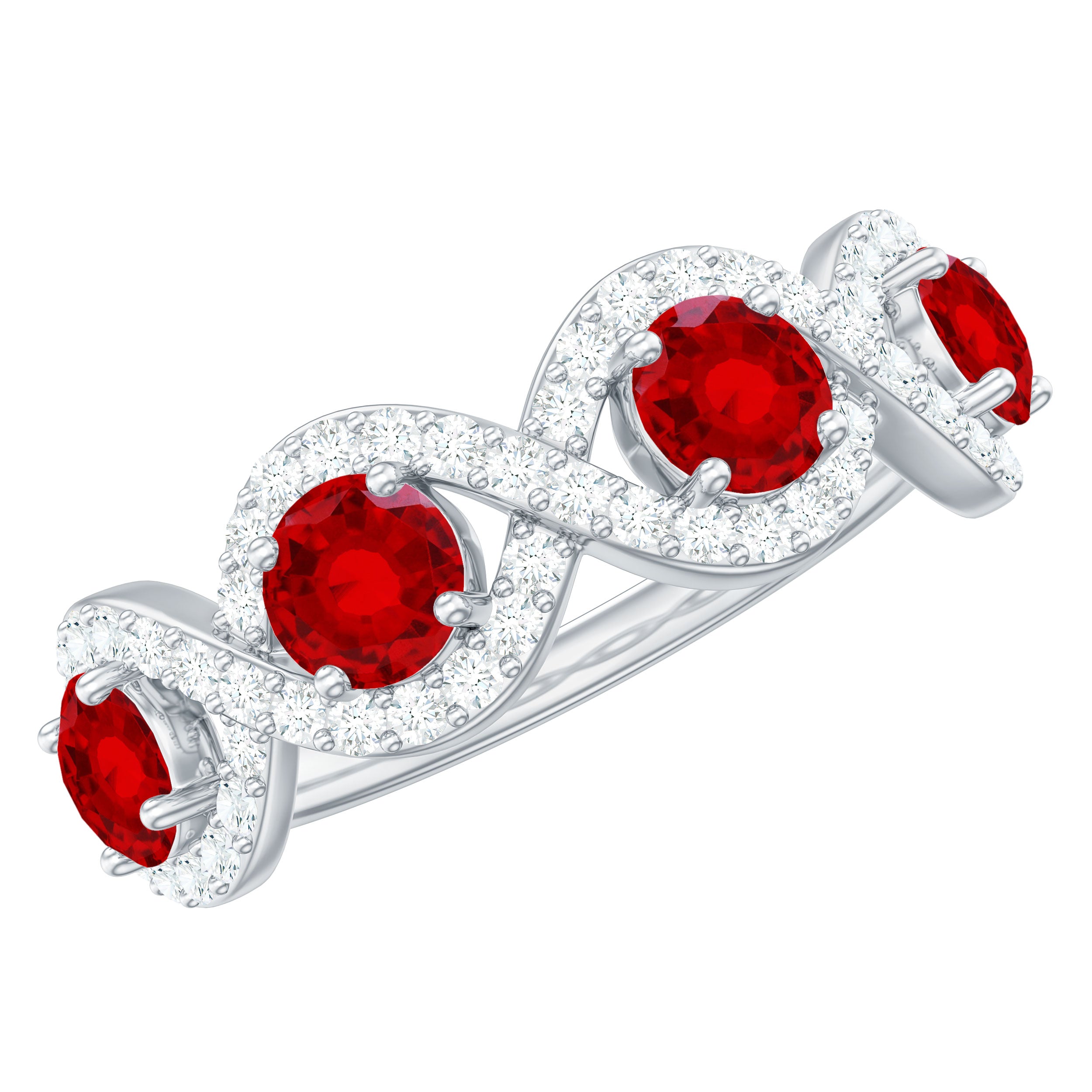 Lab-Created Ruby and Diamond Braided Half Eternity Band Ring