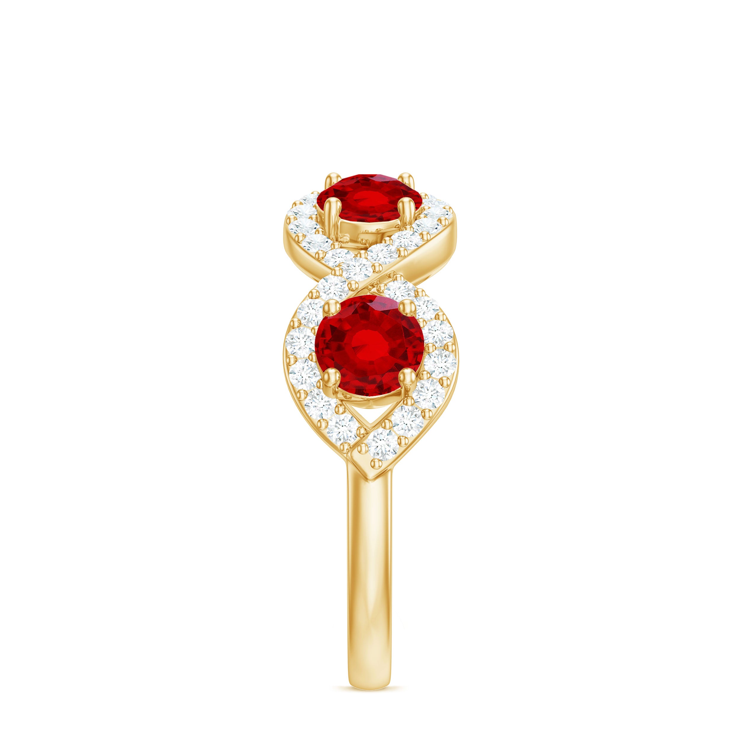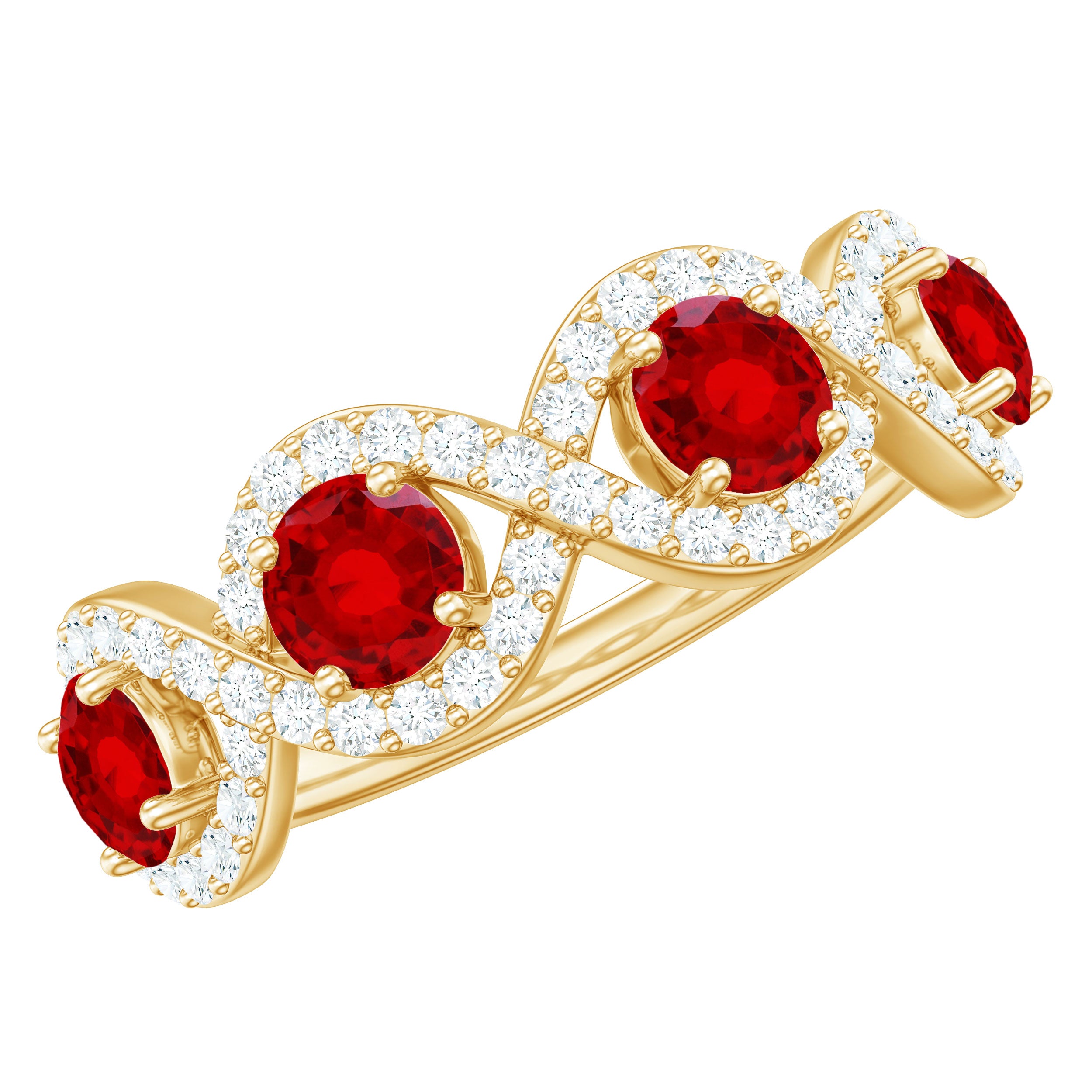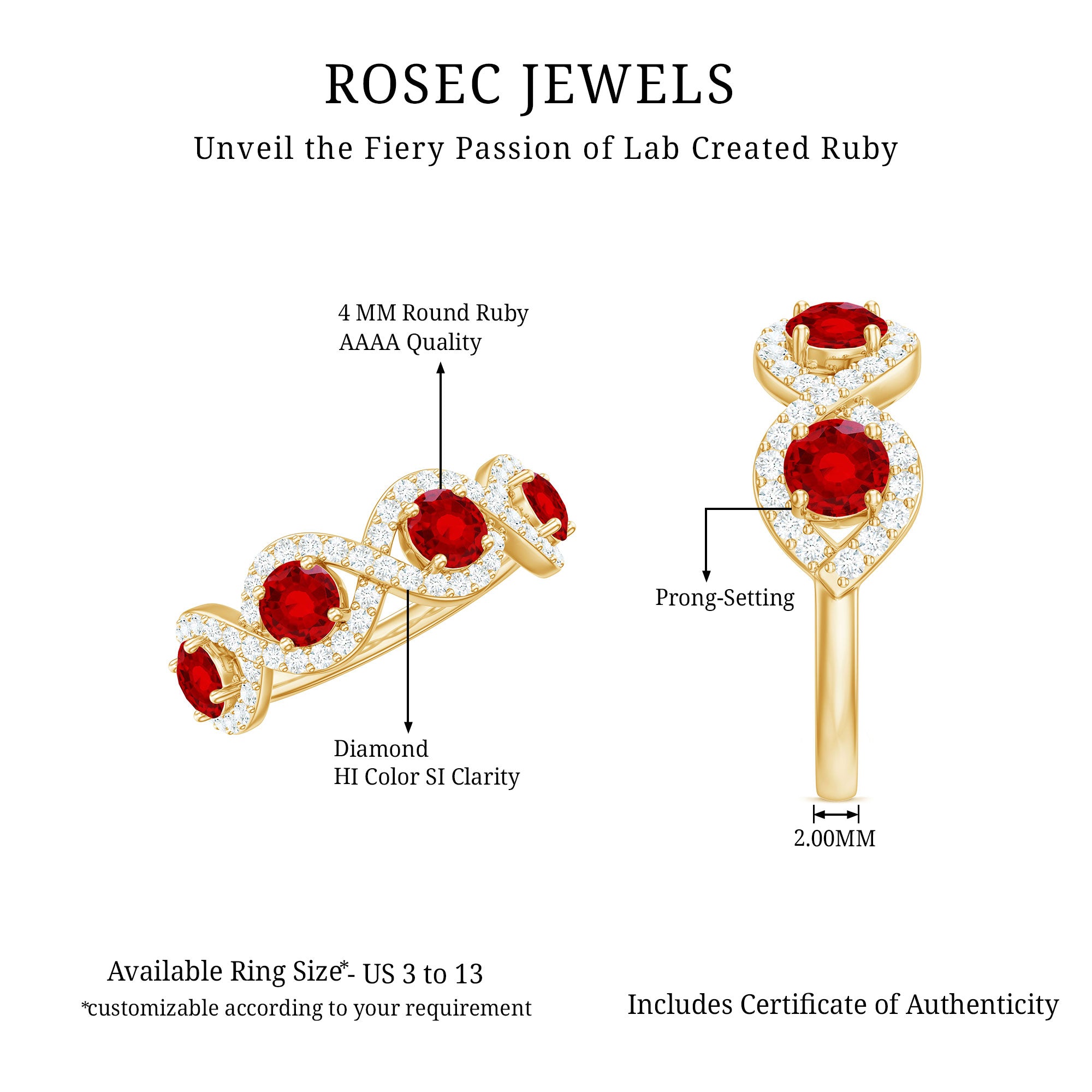 This is a stunning half eternity band ring that features lab-created ruby and Diamond braided together in a beautiful design. The ring is crafted in luxurious gold, creating a luxurious and sophisticated look that is perfect for any occasion. The created ruby and Diamond are expertly set in the ring, catching the light and sparkling with every movement. Whether youre looking for an engagement ring, a special gift, or simply a piece of jewelry to add to your collection, this half eternity band ring is a gorgeous choice.