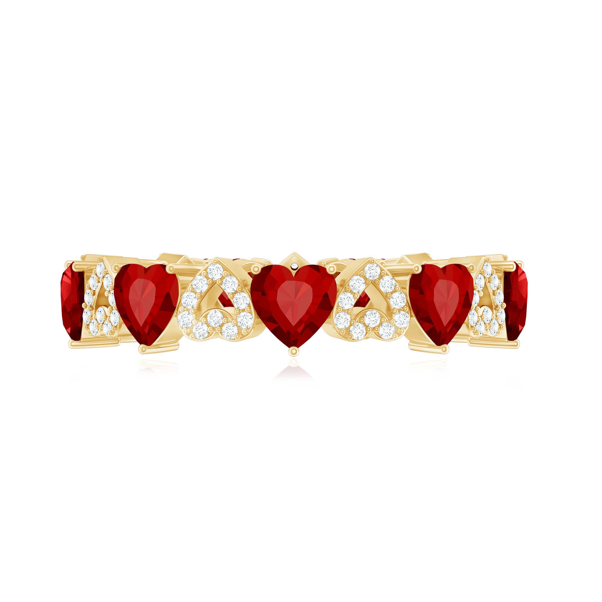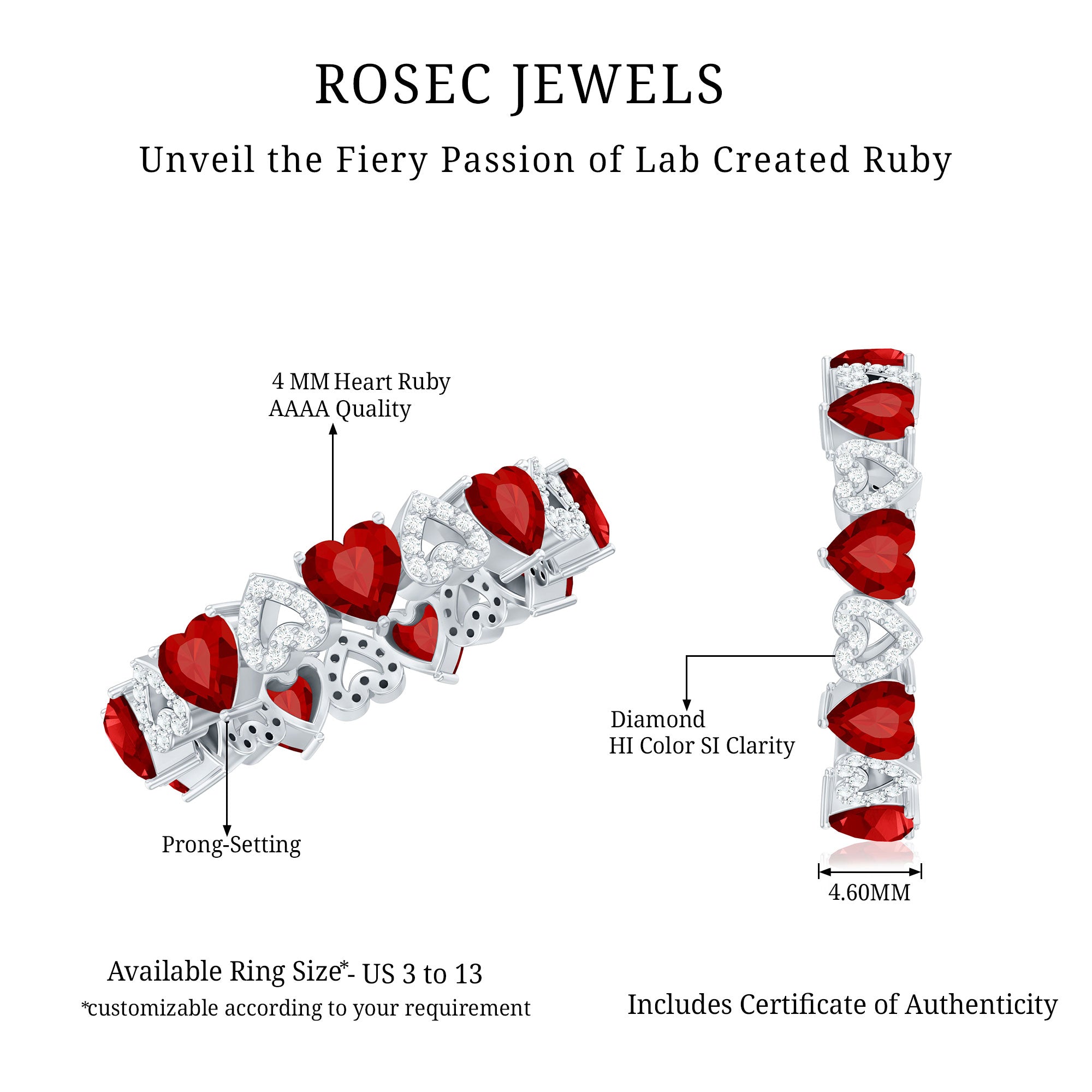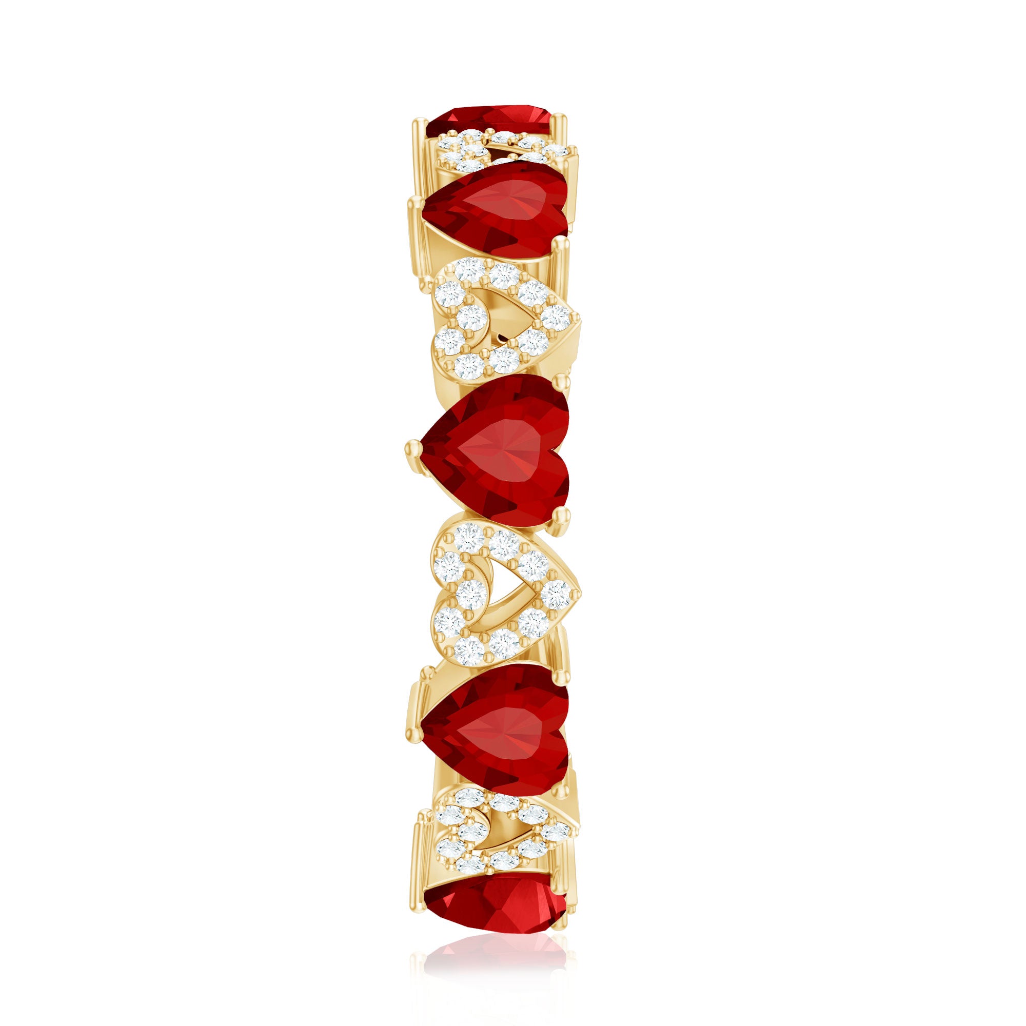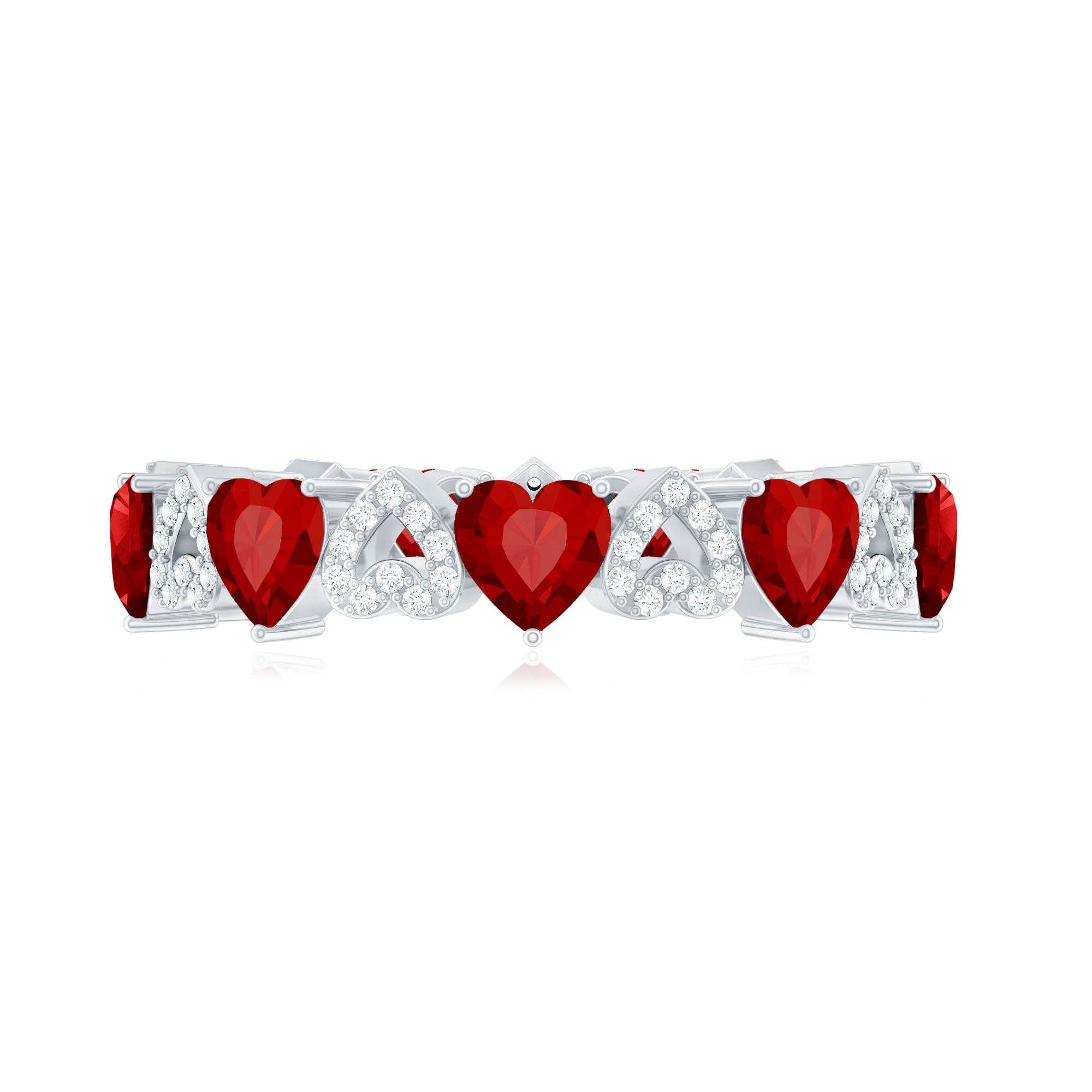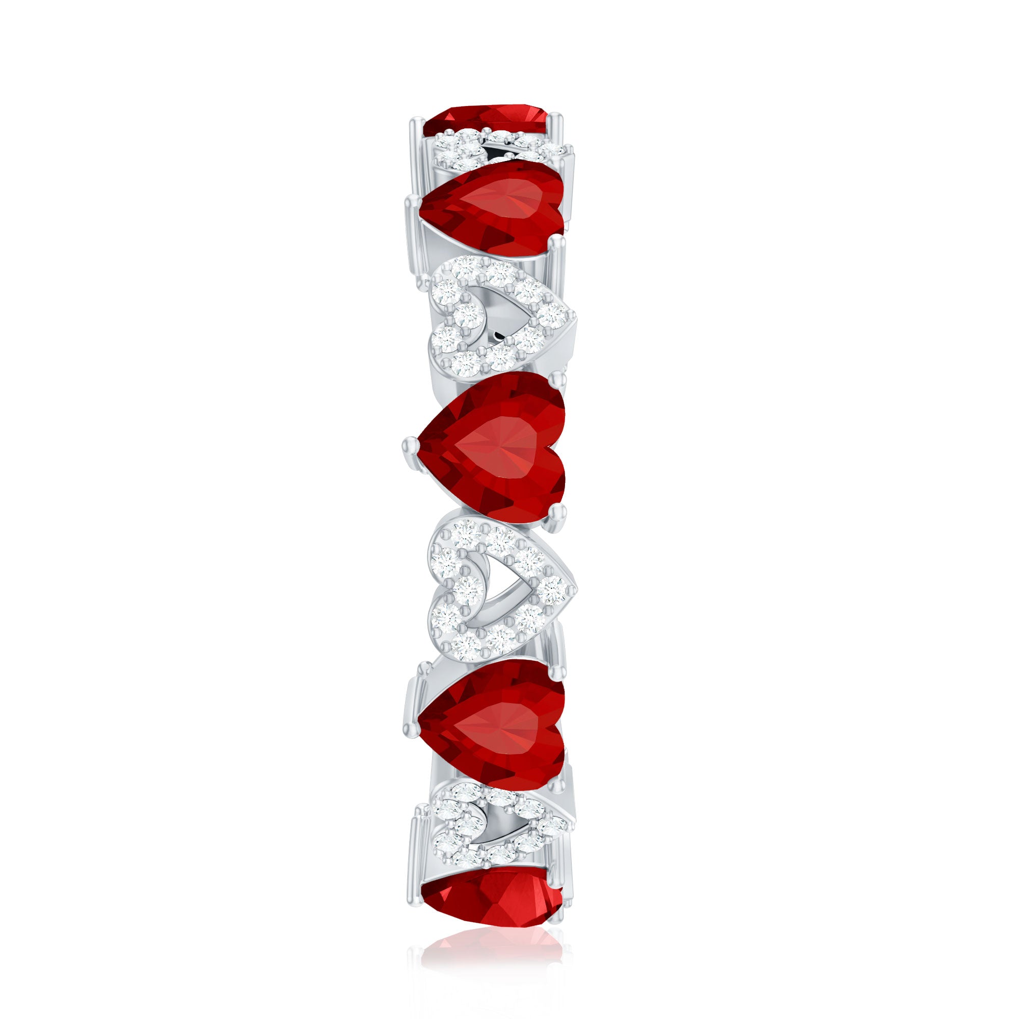 Lab-Created Ruby and Diamond Heart Eternity Band Ring