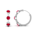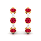 Lab Created Ruby and Diamond Hinged Hoop Earrings