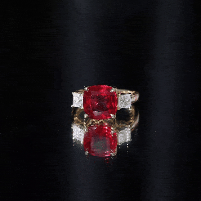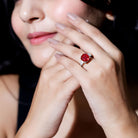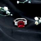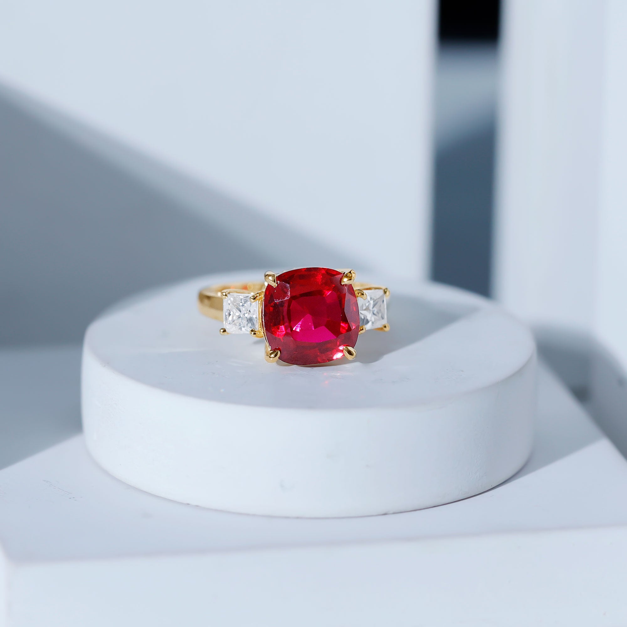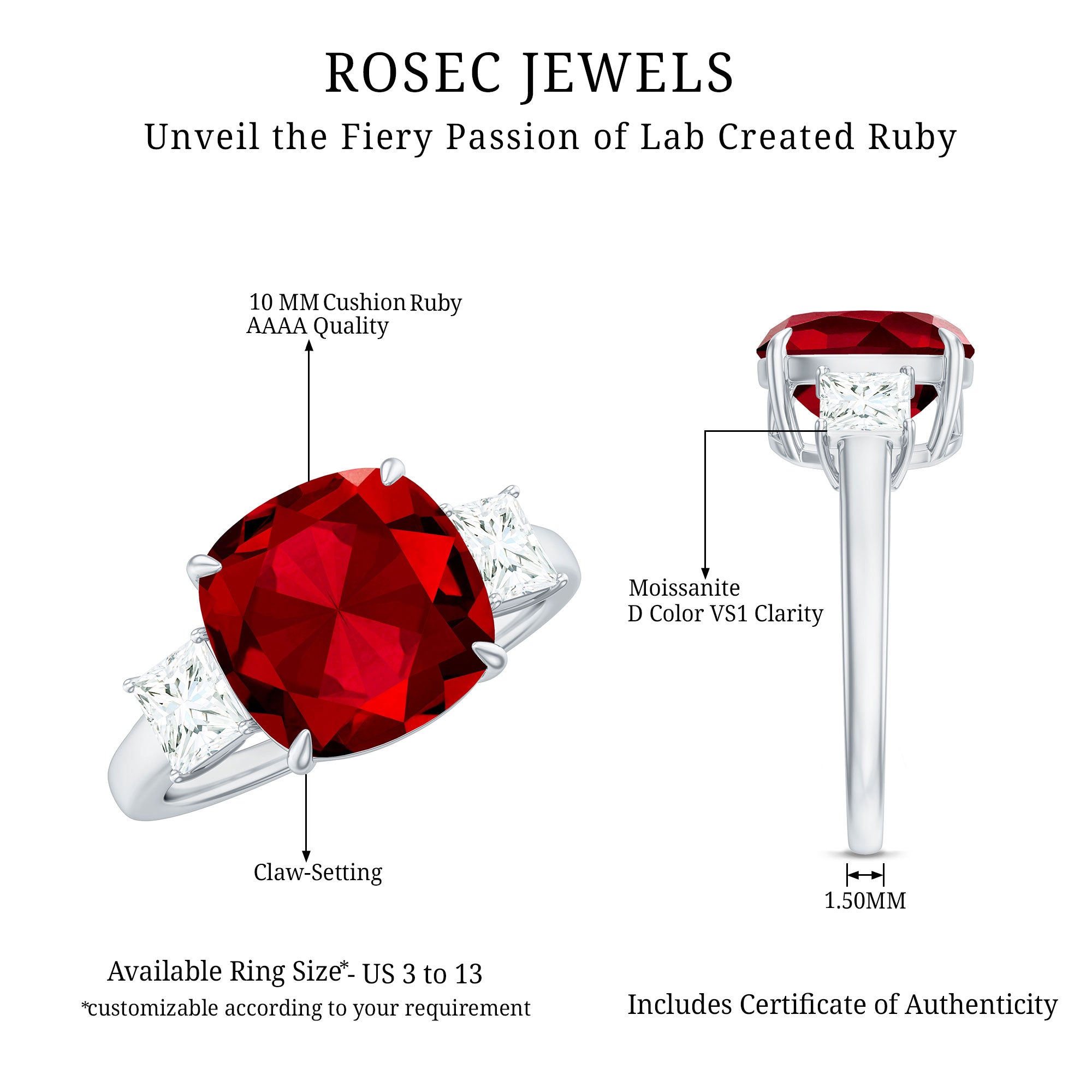 Make your proposal unforgettable with this stunning lab grown Ruby Engagement Ring. This ring features a 10 MM Cushion Cut Lab Created Ruby in a Claw Setting, accented with Princess Cut Moissanite, symbolizing your special bond. This Created Ruby Statement Engagement Ring is perfect for adding a touch of glamour to your everyday life. With a total weight of 3 Carats and AAA Quality this Cushion Cut Engagement Ring is the perfect dazzler for the occasion. This ring adorned by ruby and moissanite beholds your love and emotions towards your partner. The red hue of the ring will make the bold style statement with the perfect touch of elegance and sophistication.