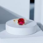 Lab Created Ruby Cushion Engagement Ring with Moissanite