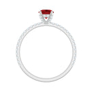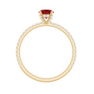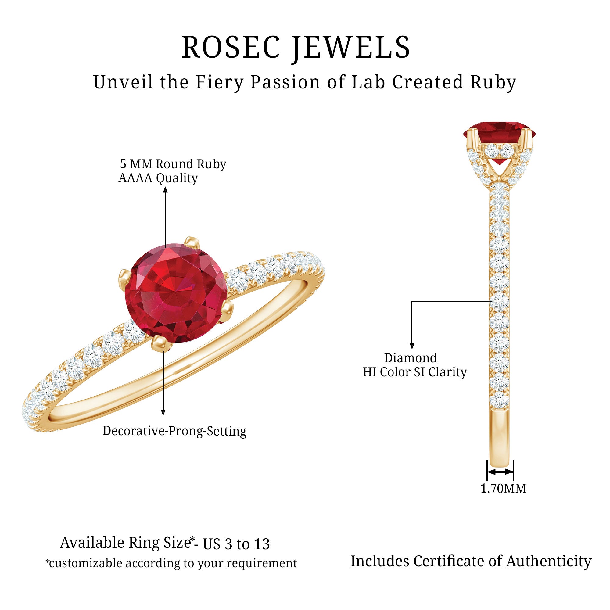 Start the next chapter of your love story with this Ruby and Diamond Engagement Ring, which is full of meaning and made to shine. This Lab Created Ruby Engagement Ring is all about simple beauty and thoughtful details that make it feel truly special. At the center is a 5 MM round shaped lab created ruby, glowing with rich red color. It is held in a decorative prong setting studded with diamonds that adds just the right amount of detail without taking away from the stone’s natural charm. The band features sparkling round diamonds that bring extra shine and elegance to the design. From every angle, the Ruby Solitaire Ring catches the light and draws the eye. Made with care and crafted to last, this Lab Grown Ruby Ring is a blend of classic style and modern simplicity. It is available in a range of sizes to help you find the perfect fit. Whether you are choosing it for the big question or as a symbol of forever, this Red Stone Ring is a beautiful way to show her just how much she means to you.
