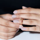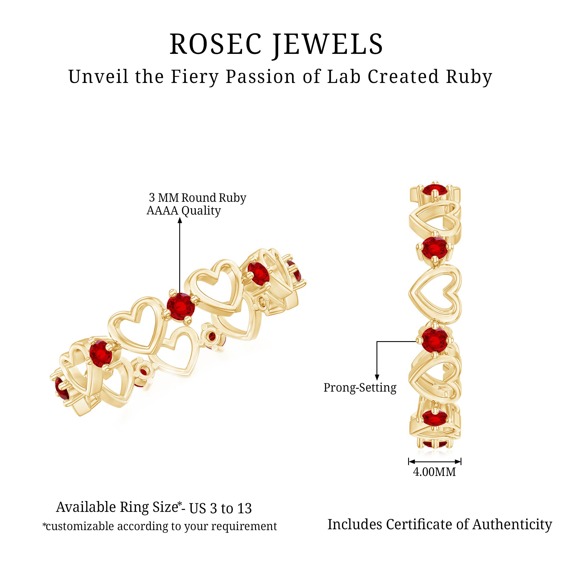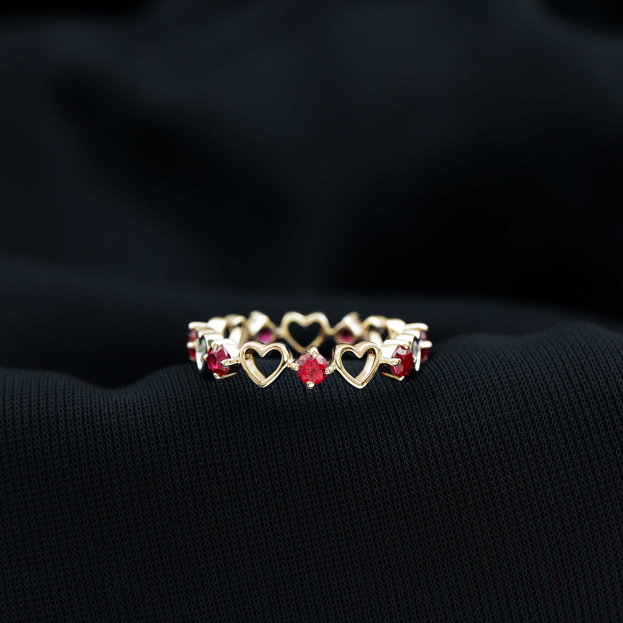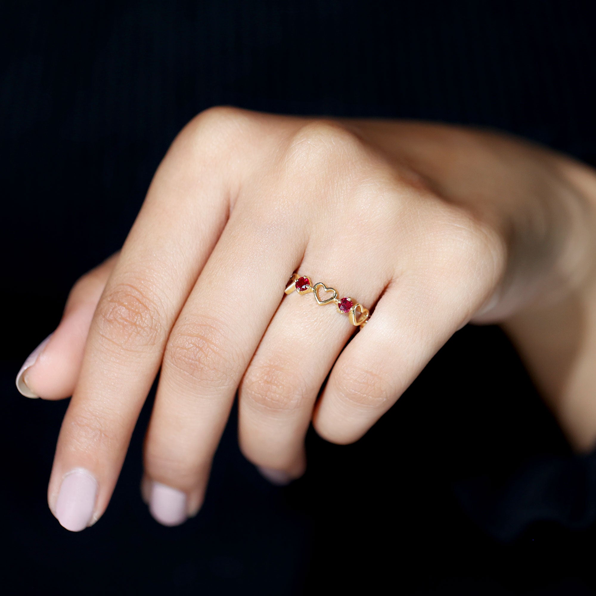 This stunning Ruby Eternity Ring is a captivating symbol of eternal love and beauty. The exquisite ring features Round Shape Ruby that encircle the band, symbolizing unending love and devotion. The open heart design adds a romantic touch, making it a meaningful gift for someone special or a beautiful addition to your jewelry collection. The vibrant red hue of the rubies contrasts beautifully creating a mesmerizing and timeless aesthetic. Whether as a promise ring, anniversary gift, or a celebration of love, the Open Heart Eternity Ring is a timeless and elegant choice that will be cherished for a lifetime. With its exquisite craftsmanship and timeless allure, this Promise Ring for Her is sure to make a statement and capture hearts.