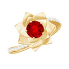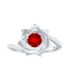 Lab Created Ruby Rose Flower Engagement Ring With Certificate